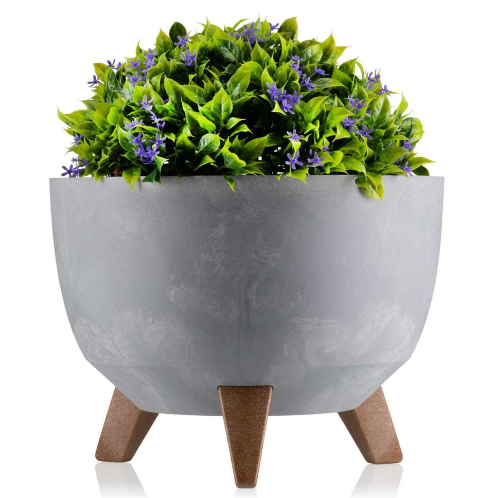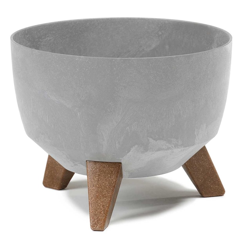 Květináč, který zaujme svým designem a praktičností. Jeho moderní styl z něj činí krásnou dekoraci na každou terasu, balkon, také je ideální do každého interiéru v domácnosti. Design dokonale ladí se zelenými rostlinami, které spolu vytvářejí harmonii estetiky a funkčnosti. Díky dřevěným nohám působí květináč noblesním dojmem.Produkt se pyšní odolností, při které konstrukce zajišťuje bezpečnost rostlin. Květináč je vyroben z pevného plastu, nepraská, nedeformuje se ani nevybledne vlivem povětrnostních podmínek. Navíc květináče s dekorem dřeva obsahují značný podíl recyklovaného dřeva.
