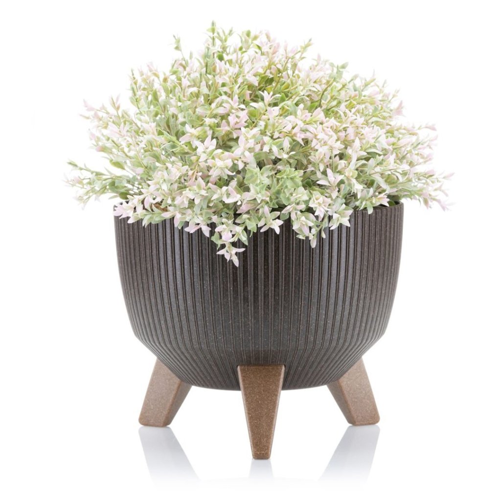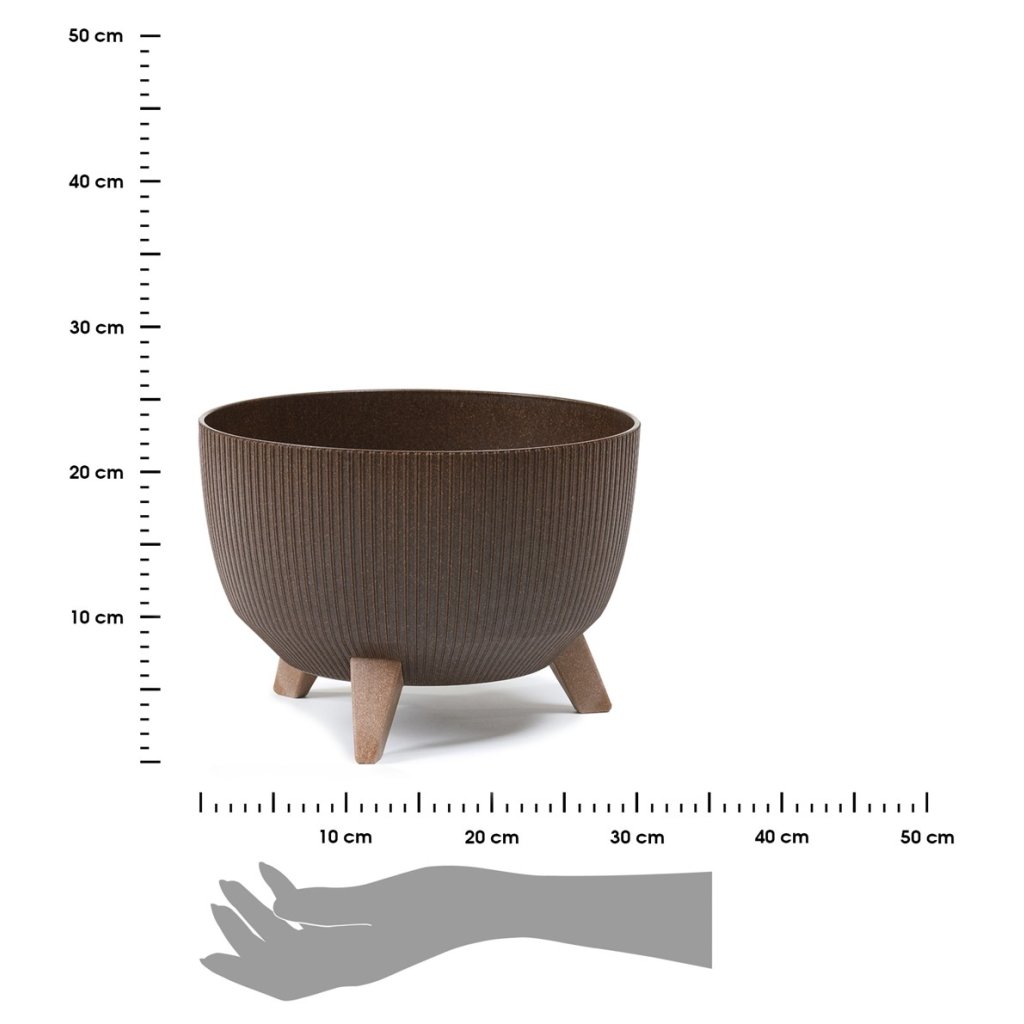 Květináč, který zaujme svým designem a praktičností. Jeho moderní styl z něj činí krásnou dekoraci na každou terasu, balkon, také je ideální do každého interiéru v domácnosti. Design dokonale ladí se zelenými rostlinami, které spolu vytvářejí harmonii estetiky a funkčnosti. Díky dřevěným nohám působí květináč noblesním dojmem.Produkt se pyšní odolností, při které konstrukce zajišťuje bezpečnost rostlin. Květináč je vyroben z pevného plastu, nepraská, nedeformuje se ani nevybledne vlivem povětrnostních podmínek. Navíc květináče s dekorem dřeva obsahují značný podíl recyklovaného dřeva.