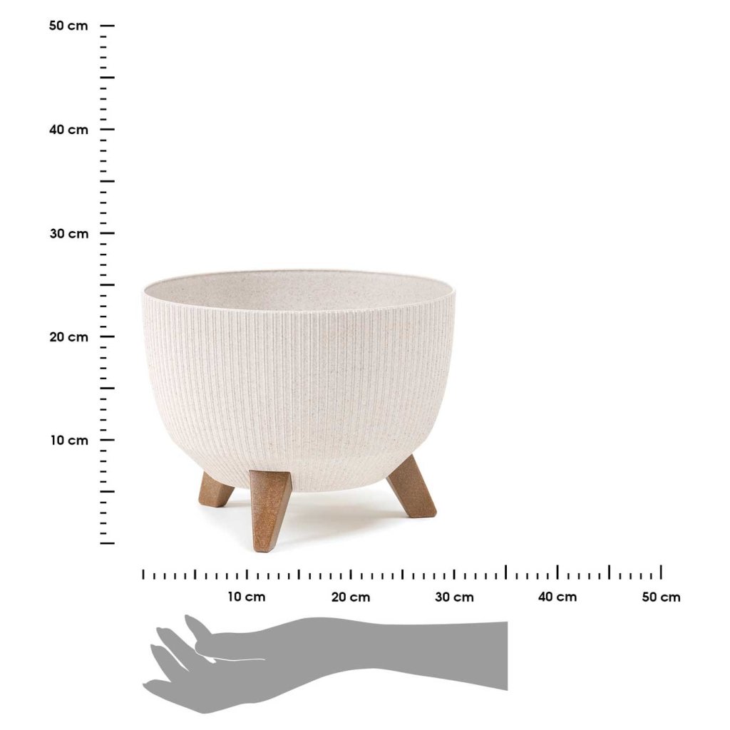 Květináč, který zaujme svým designem a praktičností. Jeho moderní styl z něj činí krásnou dekoraci na každou terasu, balkon, také je ideální do každého interiéru v domácnosti. Design dokonale ladí se zelenými rostlinami, které spolu vytvářejí harmonii estetiky a funkčnosti. Díky dřevěným nohám působí květináč noblesním dojmem.Produkt se pyšní odolností, při které konstrukce zajišťuje bezpečnost rostlin. Květináč je vyroben z pevného plastu, nepraská, nedeformuje se ani nevybledne vlivem povětrnostních podmínek. Navíc květináče s dekorem dřeva obsahují značný podíl recyklovaného dřeva.