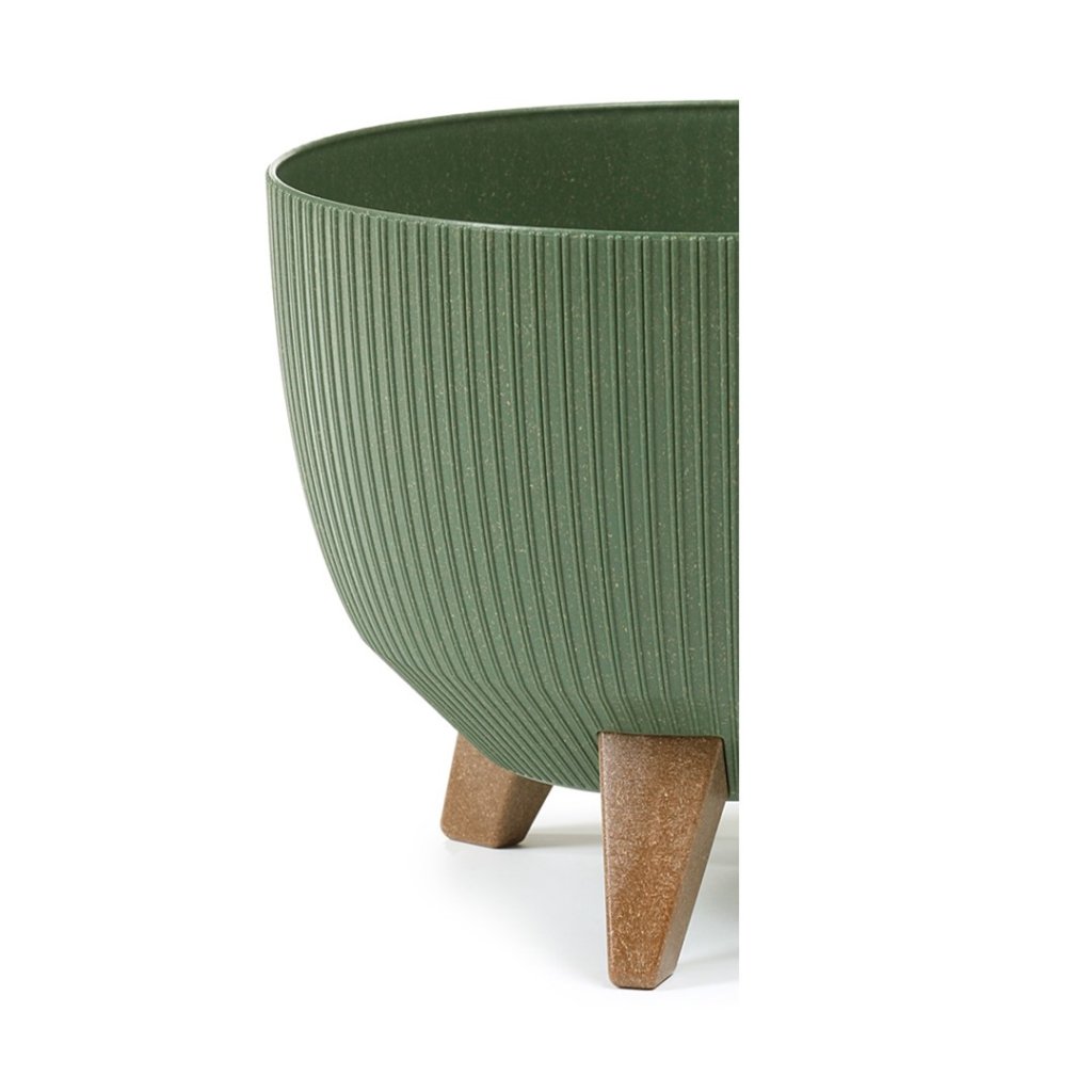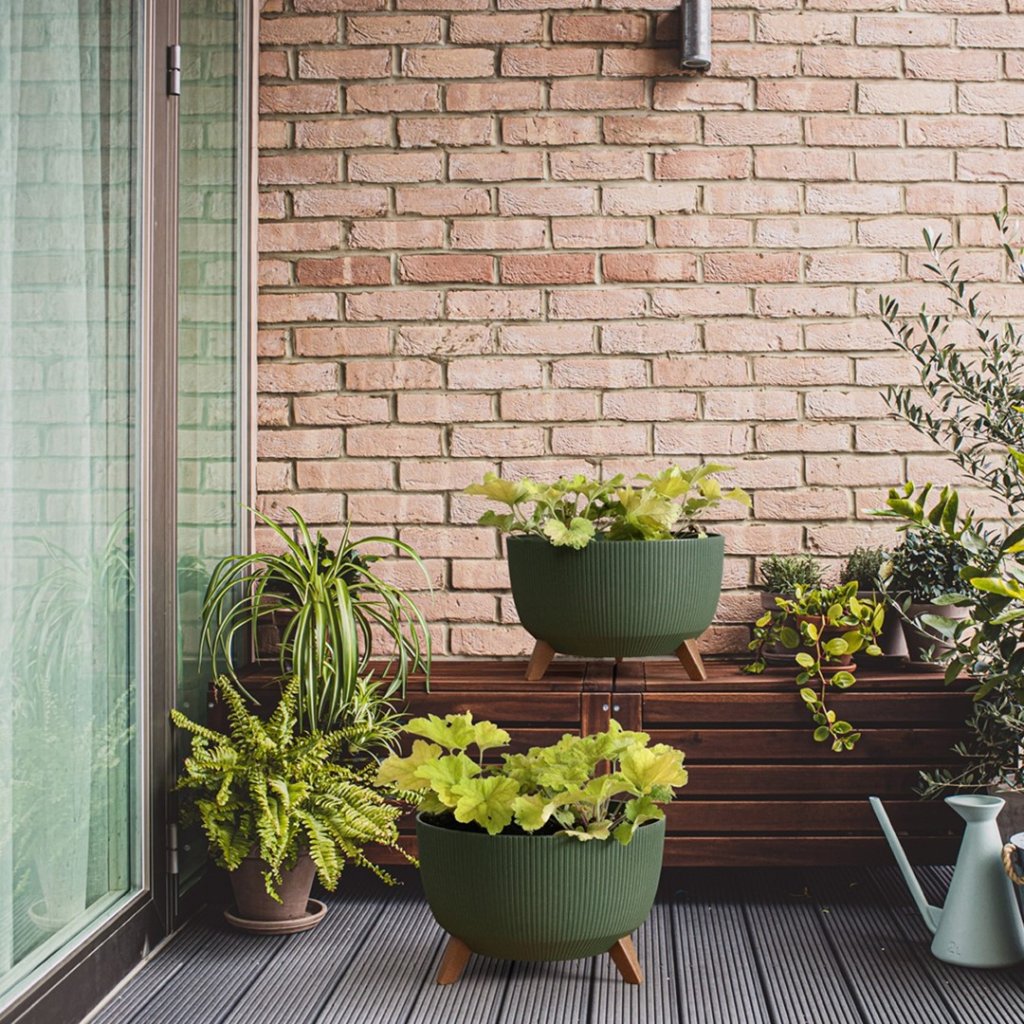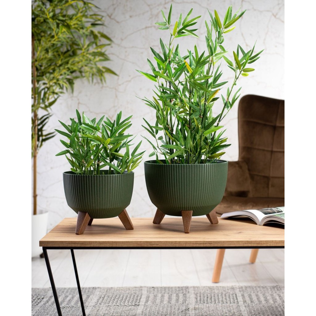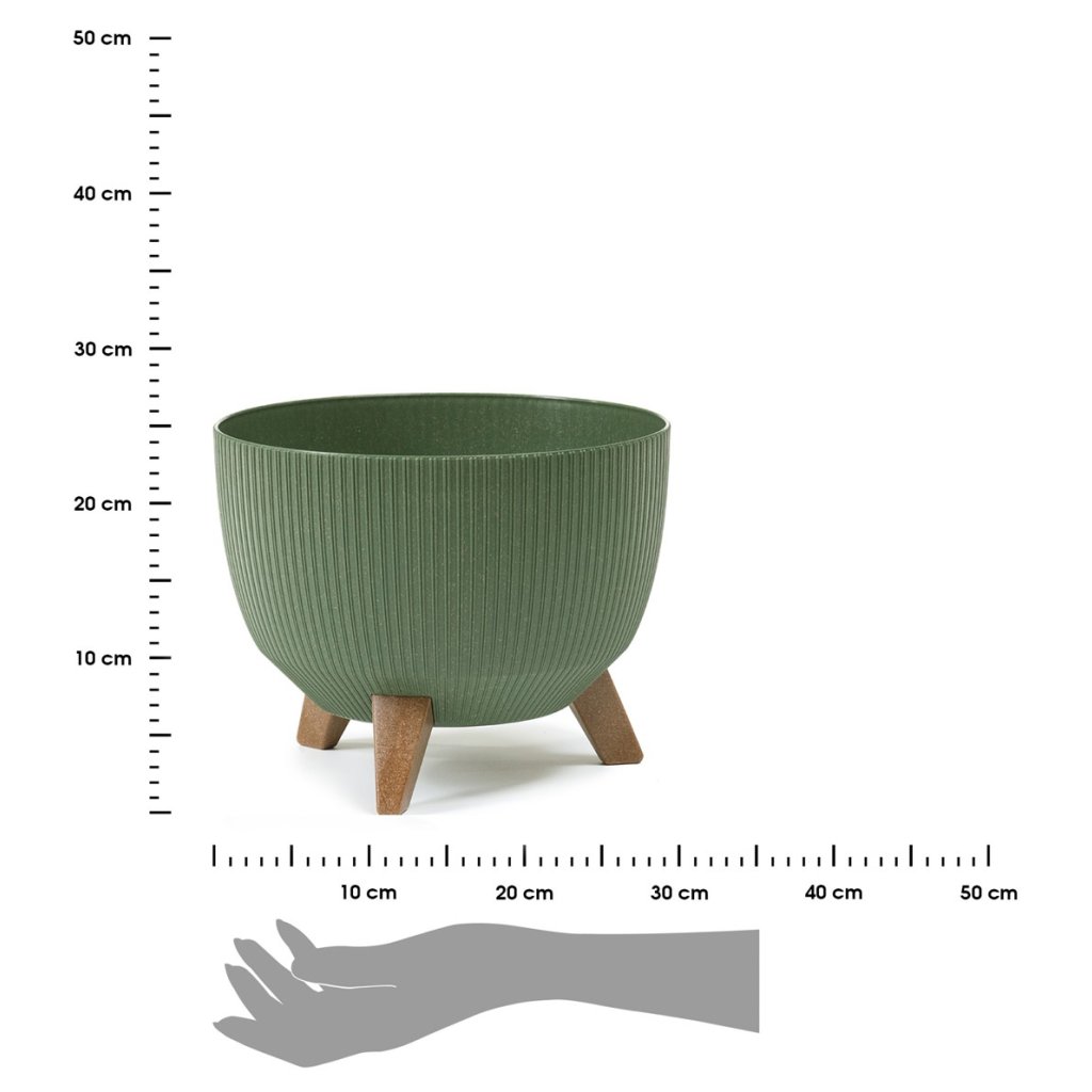Květináč, který zaujme svým designem a praktičností. Jeho moderní styl z něj činí krásnou dekoraci na každou terasu, balkon, také je ideální do každého interiéru v domácnosti. Design dokonale ladí se zelenými rostlinami, které spolu vytvářejí harmonii estetiky a funkčnosti. Díky dřevěným nohám působí květináč noblesním dojmem.Produkt se pyšní odolností, při které konstrukce zajišťuje bezpečnost rostlin. Květináč je vyroben z pevného plastu, nepraská, nedeformuje se ani nevybledne vlivem povětrnostních podmínek. Navíc květináče s dekorem dřeva obsahují značný podíl recyklovaného dřeva.
