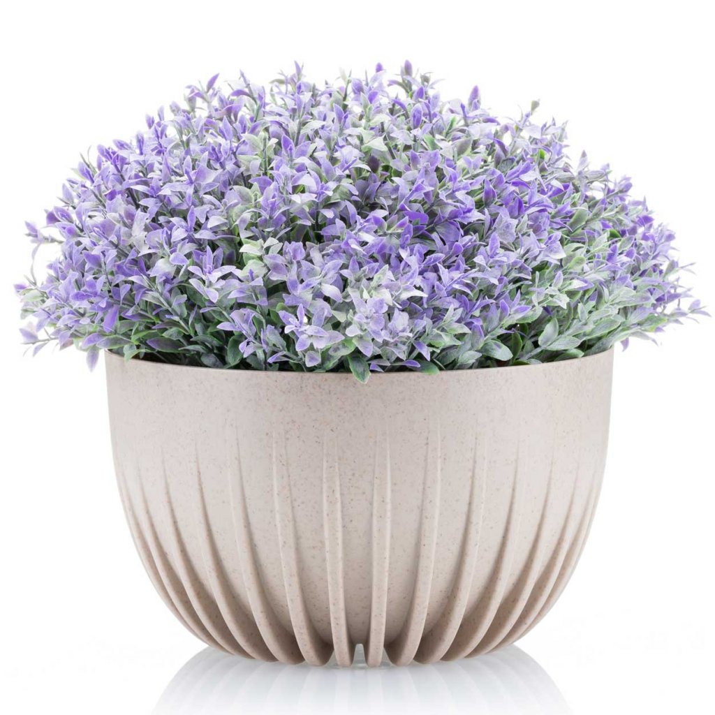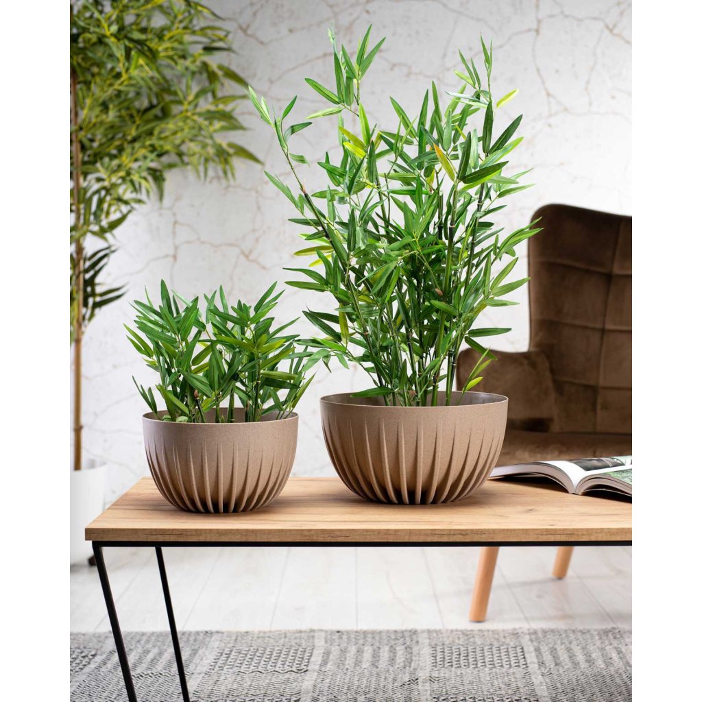 PLASTOVÝ KVĚTINÁČ STRIPPED ECO 14X24 CM BÉŽOVÁ