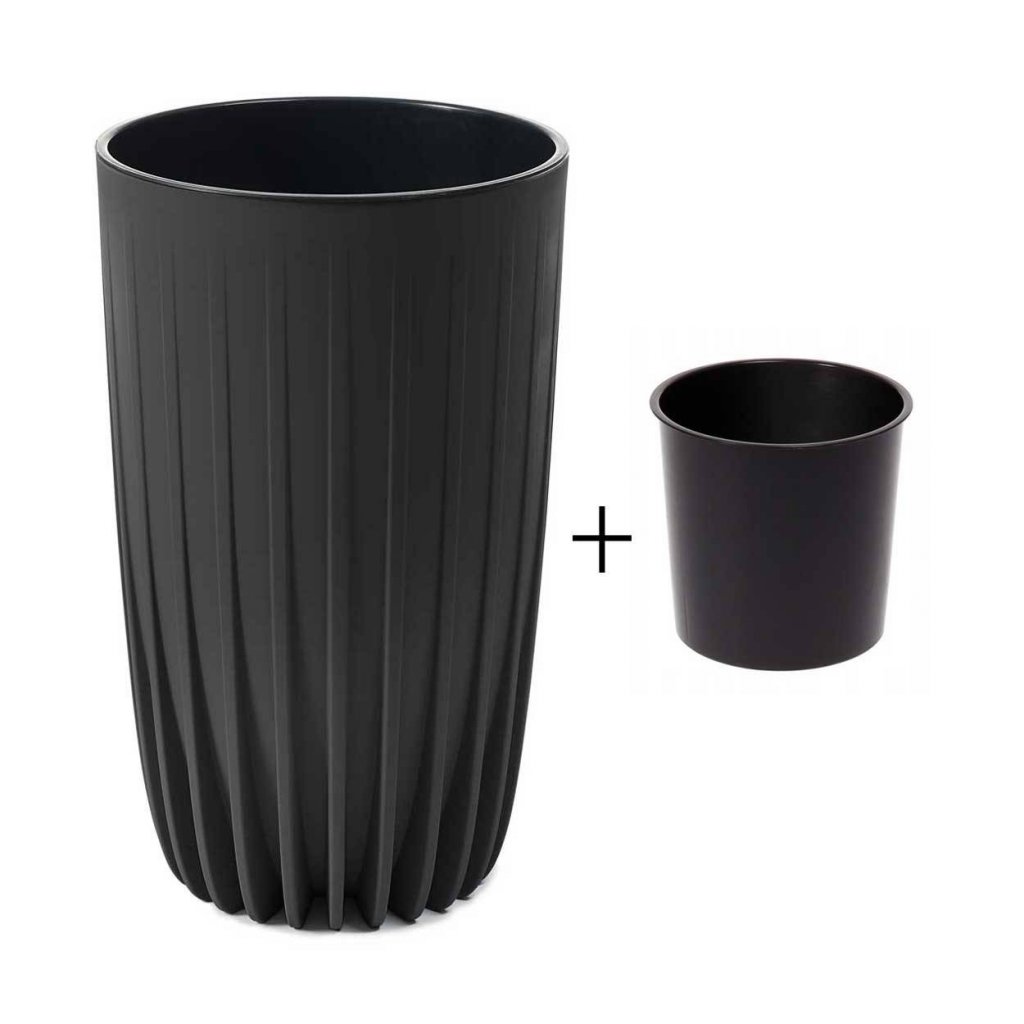 PLASTOVÝ KVĚTINÁČ STRIPPED ECO 42X25 CM ČERNÁ