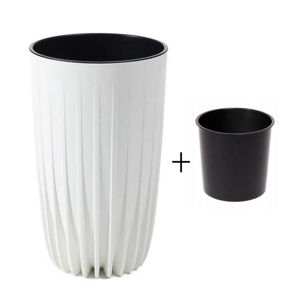 PLASTOVÝ KVĚTINÁČ STRIPPED ECO 51X30 CM BÍLÁ