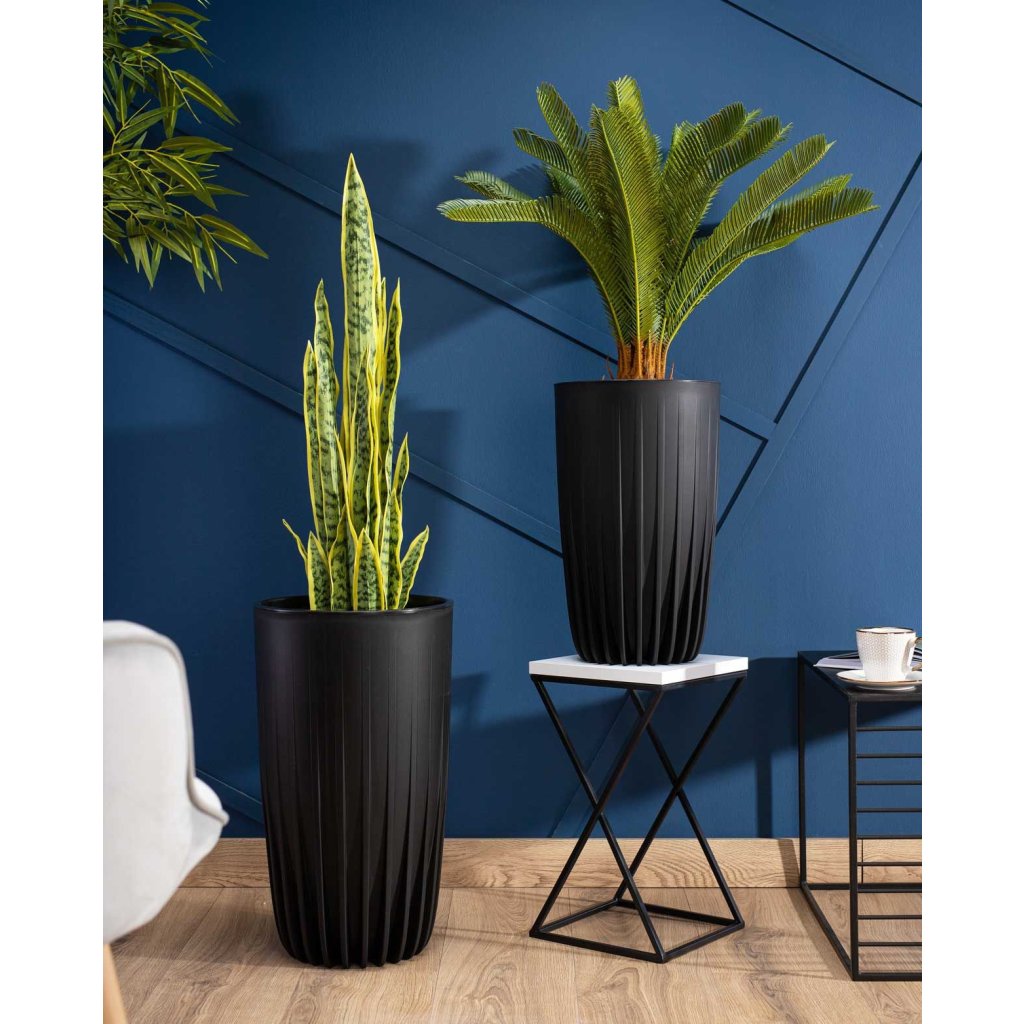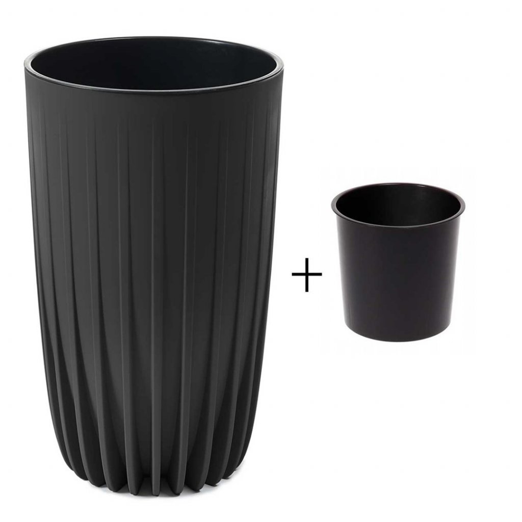 PLASTOVÝ KVĚTINÁČ STRIPPED ECO 51X30 CM ČERNÁ