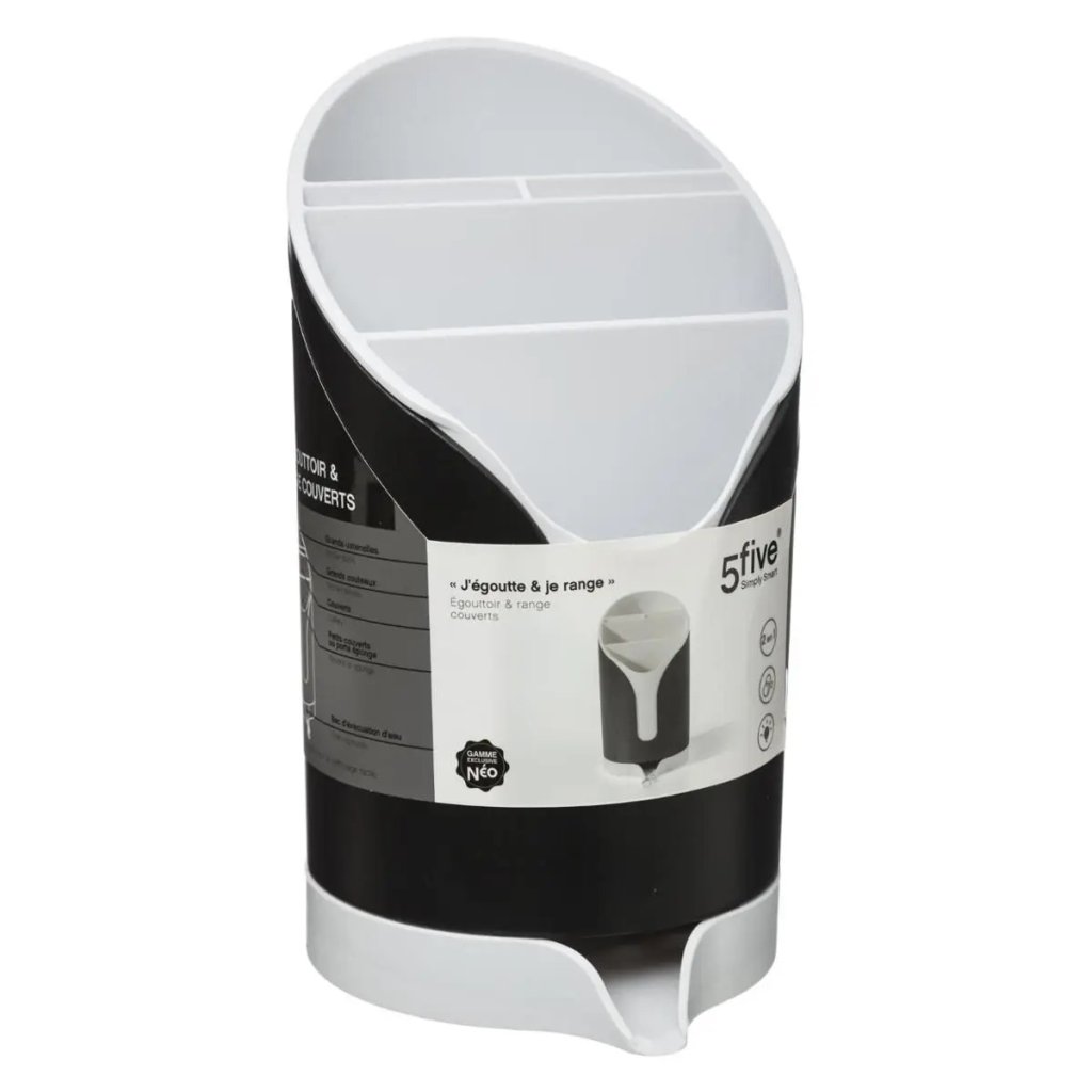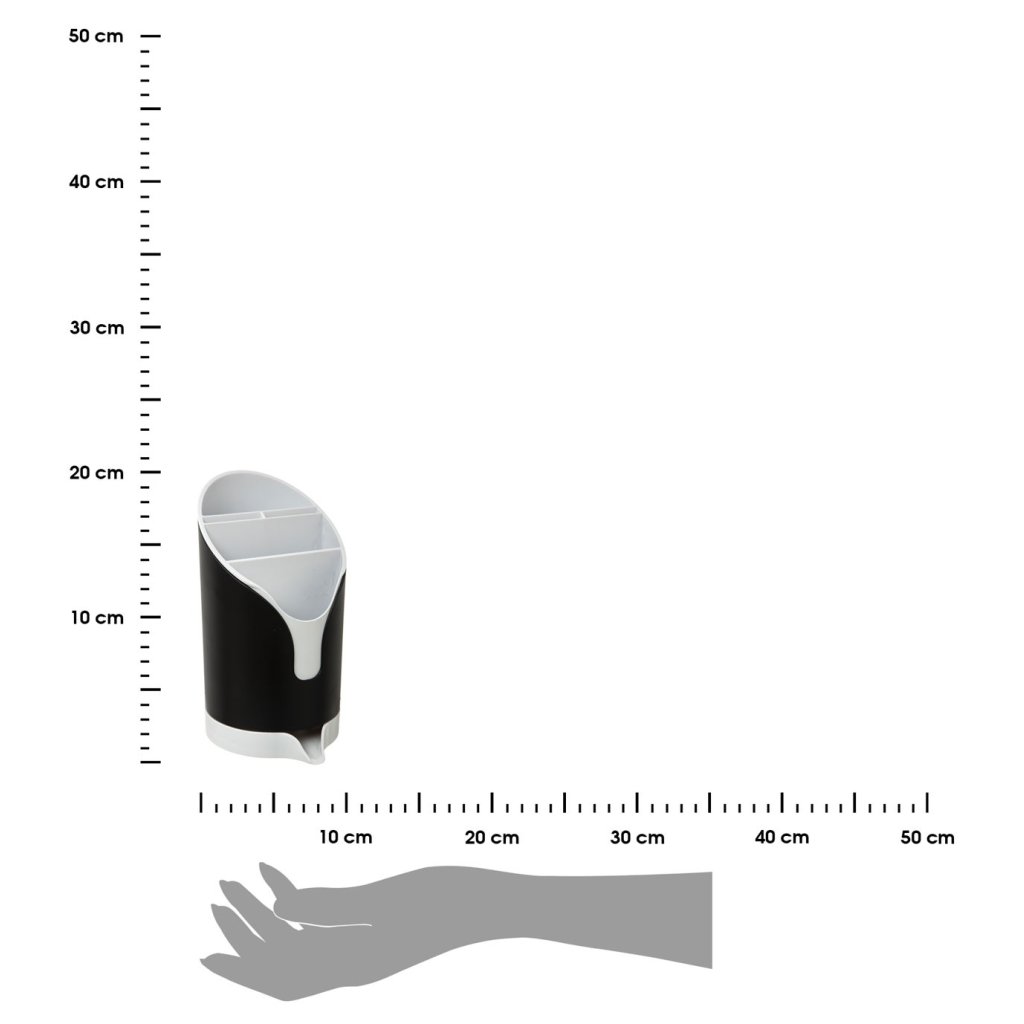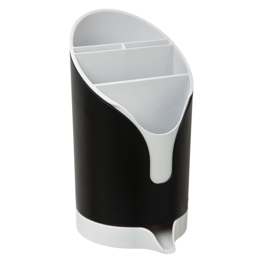 Praktický kuchyňský odkapávač umožňuje pohodlné uložení příborů a jiných kuchyňských doplňků, čímž si uděláte pořádek v prostoru u dřezu. Je vyroben z kvalitního plastu, je lehký a přesto vysoce odolný. Odkapávač má tři přihrádky, do kterých se kromě klasických příborů vejdou i vysoké předměty. Organizér je vybaven otvory pro odtok vody a odnímatelným stojanem, který usnadňuje odstranění přebytečné vody. Díky tomu snadno udržíte kuchyňský doplněk řádně čistý. Černobílá barva odkapávače dodá místnosti jedinečný charakter bez ohledu na dominantní styl kuchyně.Doplňkové parametry
