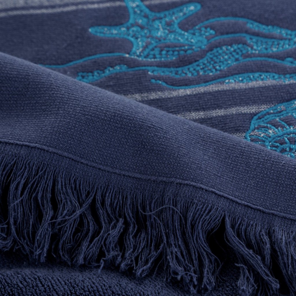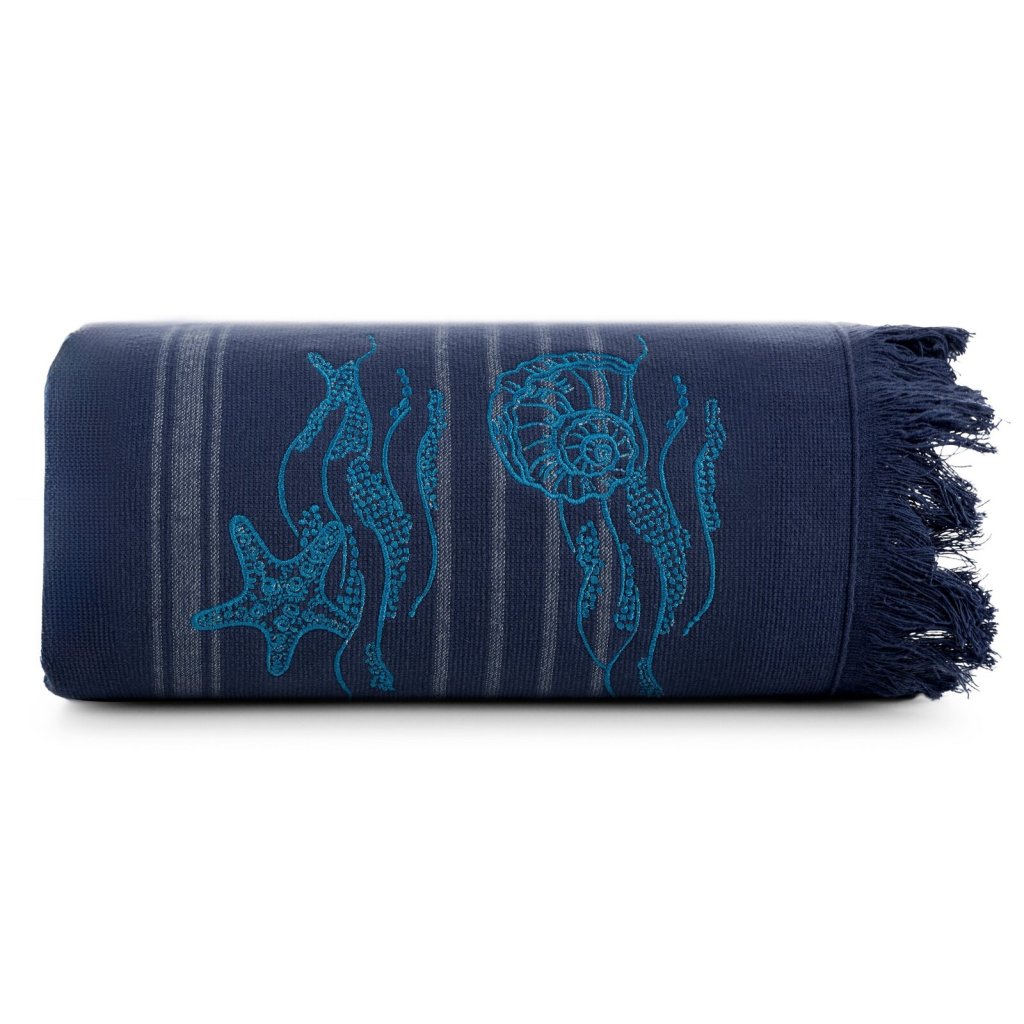 Plážová osuška se střapci, šířka: 90 cm, délka: 170 cm, barva: tmavě modrá, hmotnost: 350 GSM, složení: 70 % bavlna, 30 % polyester.Doplňkové parametry