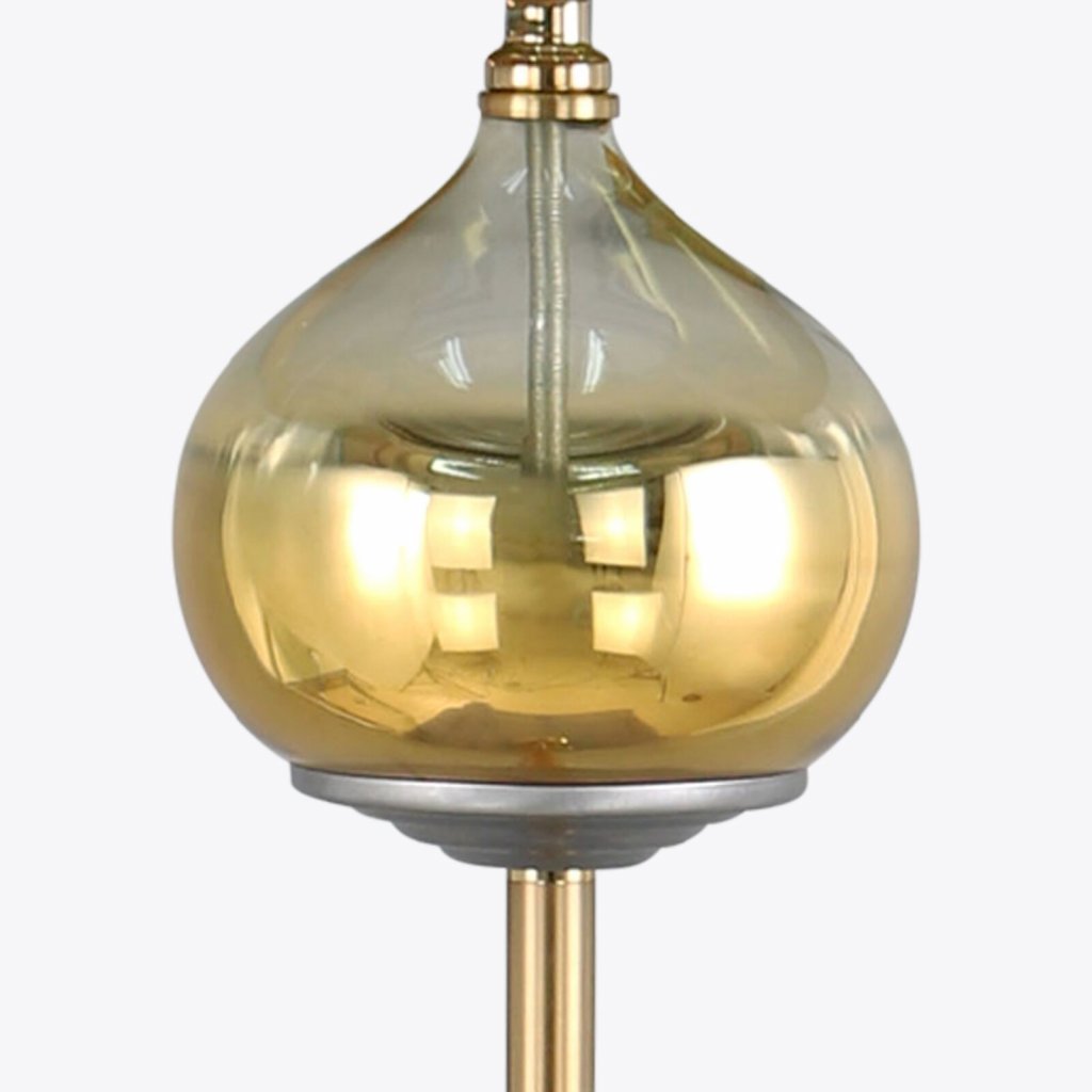 Stojací lampa z limitované kolekce se sametovým stínidlem. Průměr: 43 cm, Výška: 157 cm, Barva: tyrkysová/zlatá, Složení: železo/sklo/polyester, Napájení: CE 220-240V 50HZ, Žárovka: 1 X E27 MAX 100W, Energetická třída: ADoplňkové parametry