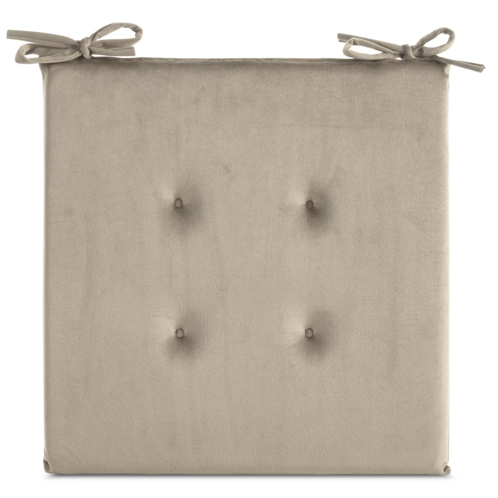 Elegantní podložka pod židli GAJA v sobě spojuje pohodlí a styl. Je vyrobena z příjemné sametové tkaniny a potěší svým jemným leskem a měkkostí. Její elastická výplň zajišťuje pohodlí při sezení a čtyři ozdobné prošití dodávají židli elegantní charakter a pomáhají udržet její tvar. Díky praktickým popruhům lze sedák snadno připevnit k opěradlu židle. Šířka: 40 cm, délka: 40 cm, výška: 3 cm, barva: béžová, hmotnost: 220 GSM, složení: 100% polyester.Doplňkové parametry