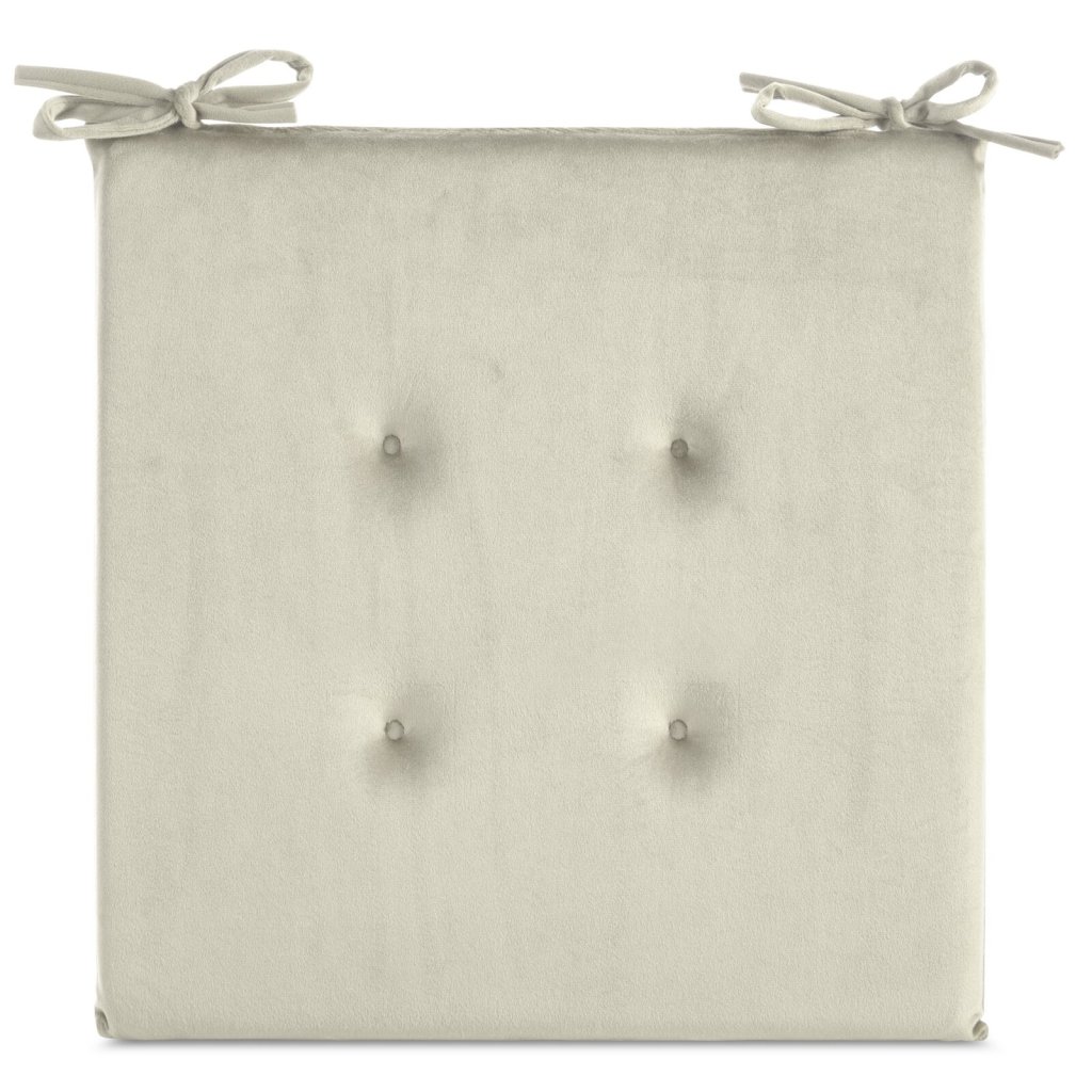 Elegantní podložka pod židli GAJA v sobě spojuje pohodlí a styl. Je vyrobena z příjemné sametové tkaniny a potěší svým jemným leskem a měkkostí. Její elastická výplň zajišťuje pohodlí při sezení a čtyři ozdobné prošití dodávají židli elegantní charakter a pomáhají udržet její tvar. Díky praktickým popruhům lze sedák snadno připevnit k opěradlu židle. Šířka: 40 cm, délka: 40 cm, výška: 3 cm, barva: krémová, hmotnost: 220 GSM, složení: 100% polyester.Doplňkové parametry