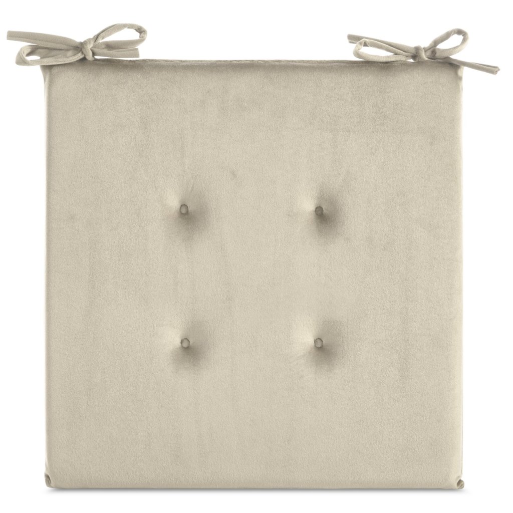 Elegantní podložka pod židli GAJA v sobě spojuje pohodlí a styl. Je vyrobena z příjemné sametové tkaniny a potěší svým jemným leskem a měkkostí. Její elastická výplň zajišťuje pohodlí při sezení a čtyři ozdobné prošití dodávají židli elegantní charakter a pomáhají udržet její tvar. Díky praktickým popruhům lze sedák snadno připevnit k opěradlu židle. Šířka: 40 cm, délka: 40 cm, výška: 3 cm, barva: světle béžová, hmotnost: 220 GSM, složení: 100% polyester.Doplňkové parametry