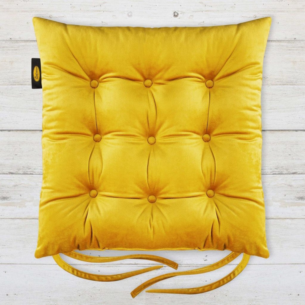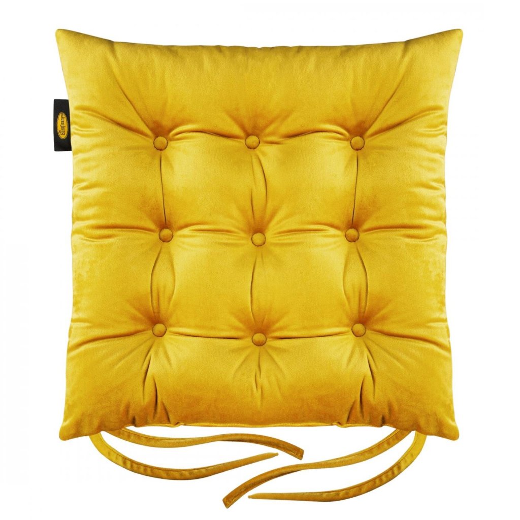 Dekorační polštářek na židli. Šířka: 40 cm, délka: 40 cm, barva: žlutá, složení: 100% polyester.Doplňkové parametry