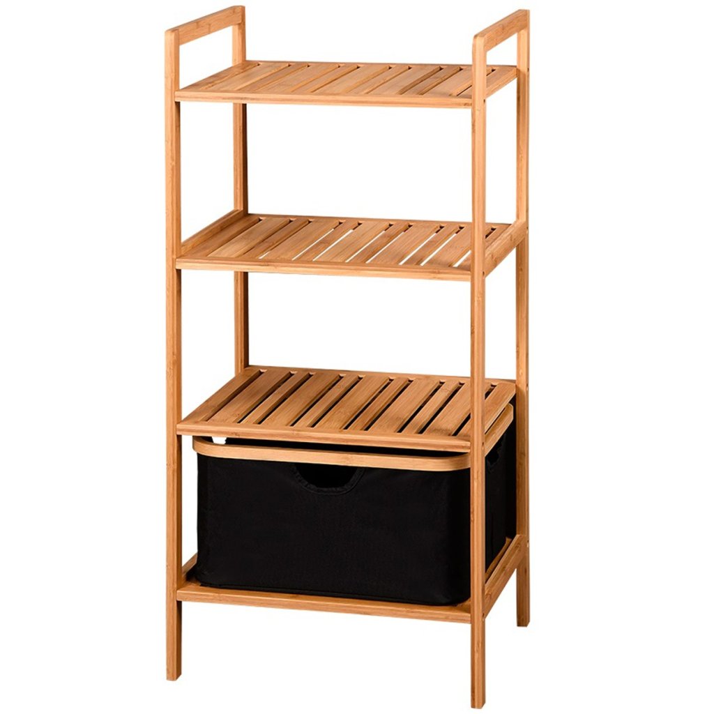 Moderní koupelnová skříňka značky Kesper, která nejen zorganizuje váš prostor, ale dodá mu eleganci a styl. Skříňka skvěle poslouží jako organizér pro různé věci v každé koupelně. 4 úrovně poskytují prostor pro ručníky, kosmetiku a další doplňky. Přiložený koš je vyroben z recyklovaného polyesteru. Je prostorný, lehký a odnímatelný. Skříňka je vyrobena z bambusového dřeva je trvanlivá, odolná vůči vlhkosti a nenáročná na údržbu. Skříňka dokonale zapadne do různých stylů koupelnového designu.Rozměry