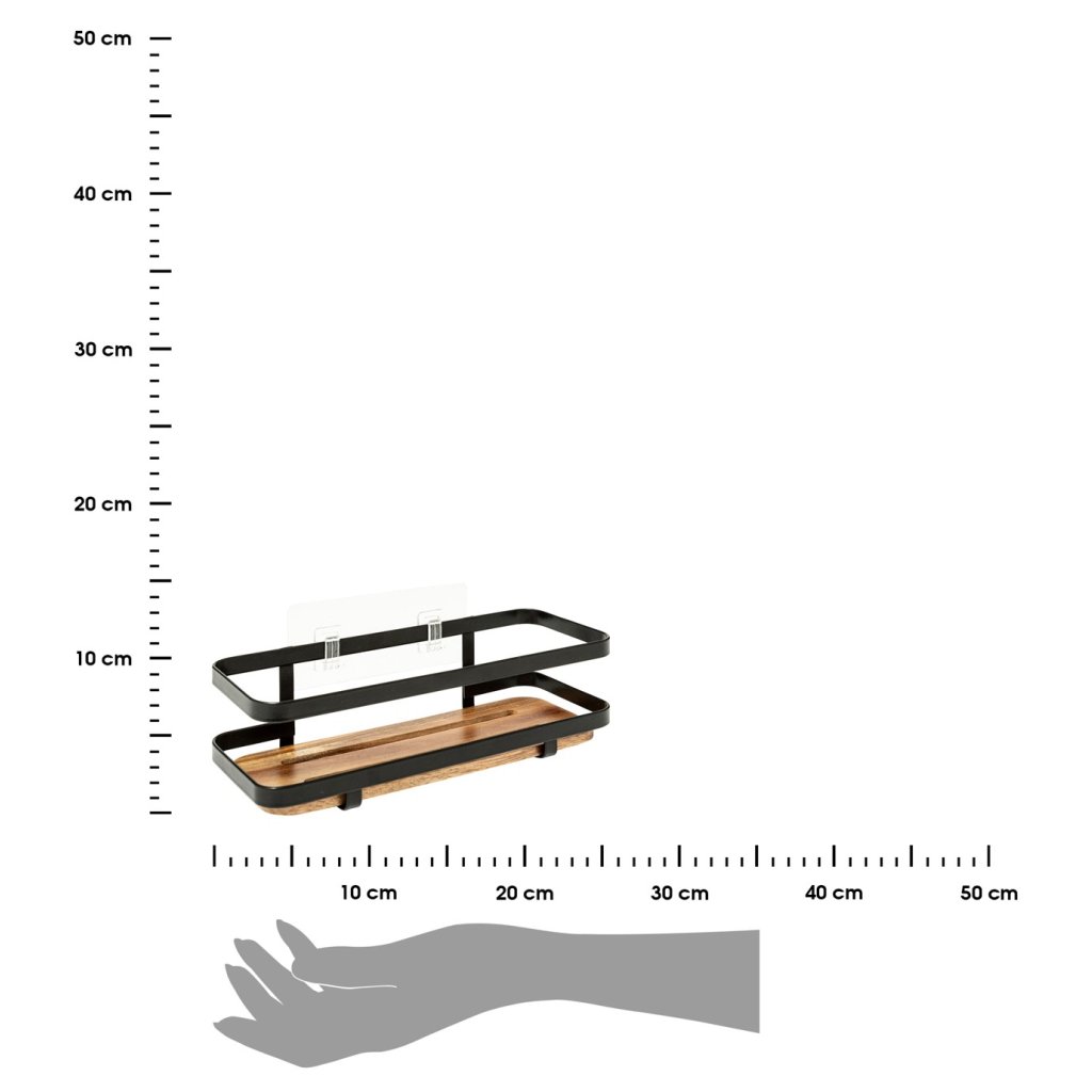 Dodejte své koupelně nádech elegance a funkčnosti s nástěnnou policí z odolného kovu a přírodního dřeva. Tato stylová koupelnová polička je jako stvořená pro odkládání mýdel, kosmetiky nebo jiných drobných doplňků, které chcete mít vždy po ruce. Instalace je rychlá a bezproblémová, bez potřeby vrtání nebo použití nářadí – ideální řešení pro ty, kdo oceňují jednoduchost a pohodlí. Pevná kovová konstrukce zajišťuje odolnost, zatímco dřevěný povrch dodává teplo a přirozený šarm. Regál dokonale zapadne do moderních interiérových designů, přičemž podtrhne jejich minimalistický charakter. Jedná se o praktické a estetické zařízení, které vám usnadní uspořádání prostoru ve vaší koupelně.Rozměry