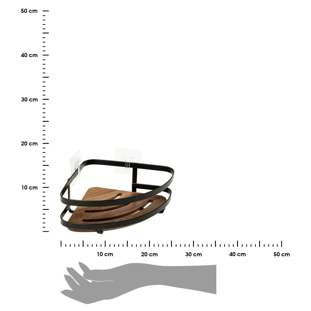 Dodejte své koupelně nádech elegance a funkčnosti s rohovou policí z odolného kovu a přírodního dřeva. Tato stylová koupelnová polička je jako stvořená pro odkládání mýdel, kosmetiky nebo jiných drobných doplňků, které chcete mít vždy po ruce. Instalace je rychlá a bezproblémová, bez potřeby vrtání nebo použití nářadí – ideální řešení pro lidi, kteří oceňují jednoduchost a pohodlí. Stabilní kovová konstrukce zajišťuje odolnost a dřevěná povrchová úprava dodává teplo a přirozený šarm. Polička se perfektně hodí k moderním designům interiérů, přičemž zdůrazňuje jejich minimalistický charakter. Jedná se o praktické a estetické zařízení, které vám usnadní uspořádání prostoru ve vaší koupelně.Rozměry
