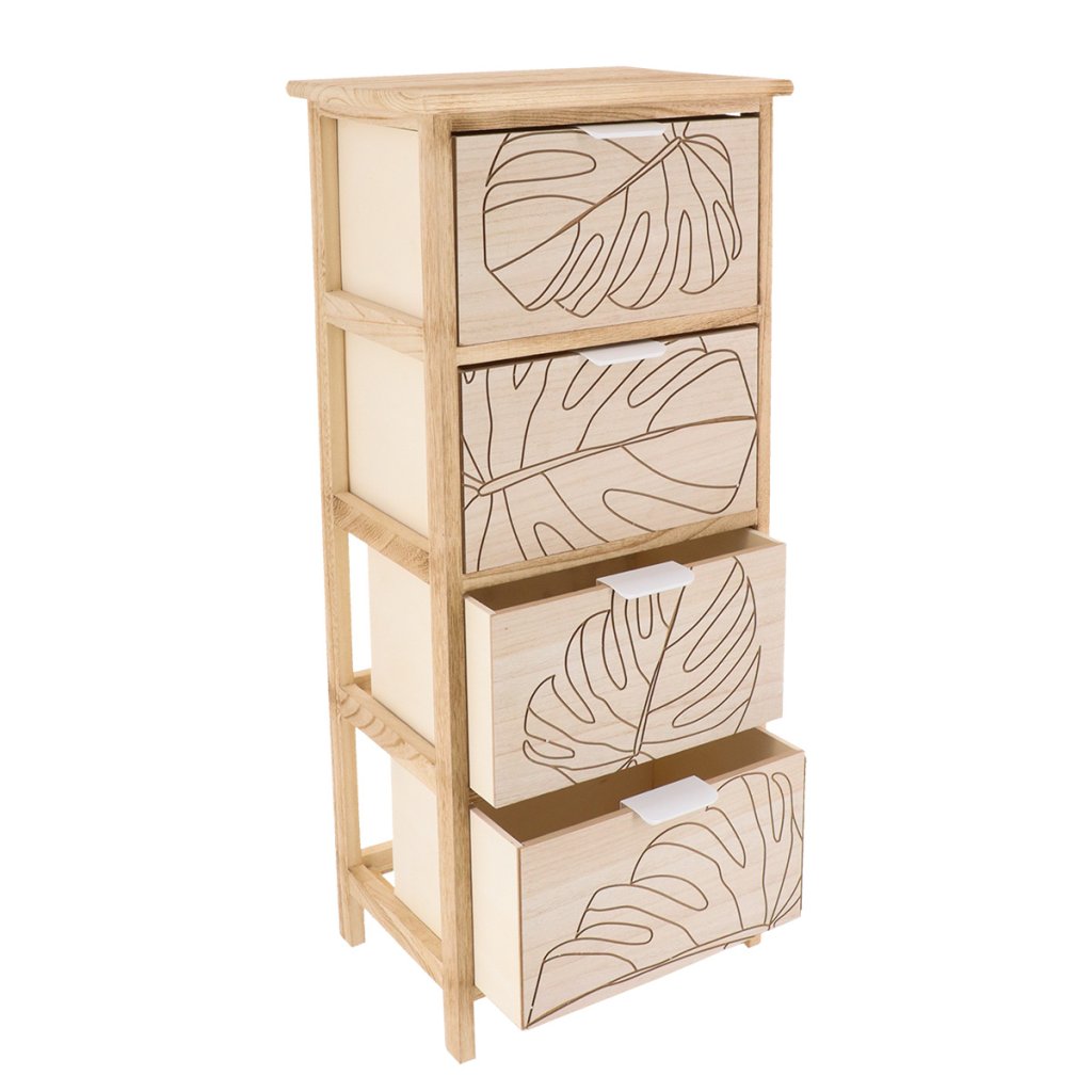 Polička do koupelny Hutton4 v béžové barvě je stylová komoda se čtyřmi zásuvkami a přírodním dřevěným provedením , která spojuje funkčnost s estetickým vzhledem .