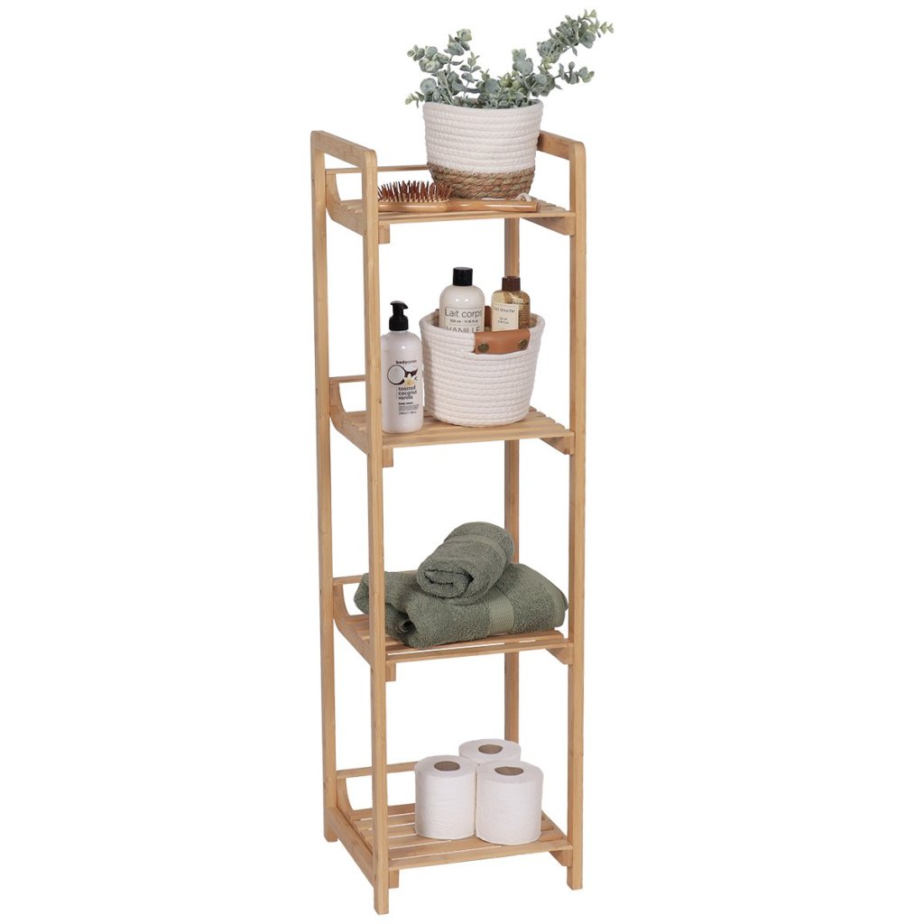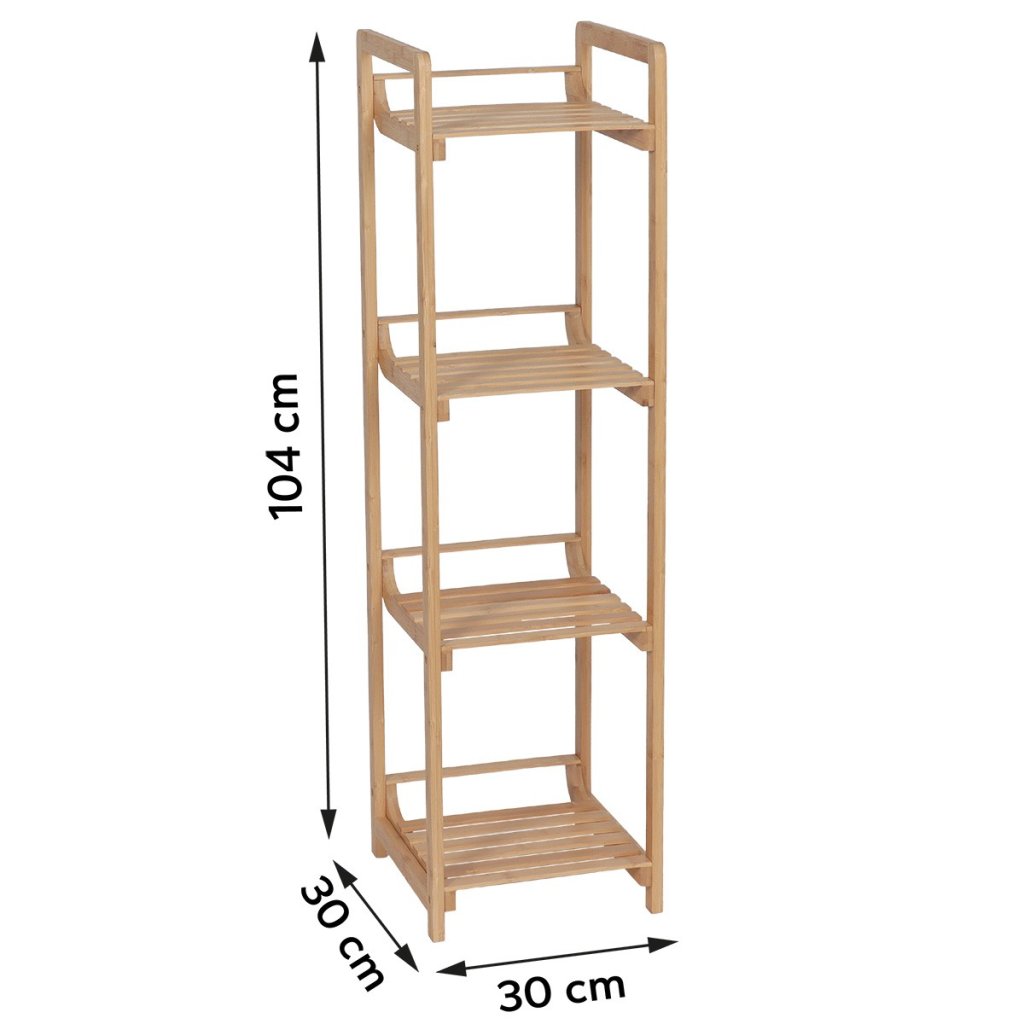 Koupelnová polička od francouzské značky Tendance je dokonalým řešením pro ty, kdo hledají praktický a elegantní způsob skladování v koupelně. Díky přírodním vlastnostem bambusu je polička odolná vůči vlhkosti a je ideální do koupelnových podmínek, zajišťuje dlouhodobé používání. Její jednoduchý, ale moderní design se perfektně hodí do různých interiérových designů a dodává jim teplý a přirozený charakter. Čtyři prostorné police umožňují pohodlné uložení ručníků, kosmetiky, doplňků nebo jiných potřebných předmětů, čímž pomáhají organizovat prostor.Kolekce Lambie je funkční nábytek vyrobený z odolného bambusu dodá vašemu prostoru teplo a styl. Uspořádejte si ručníky, kosmetiku a doplňky jednoduše a esteticky. Použité bambusové dřevo je odolné vůči vlhkosti a deformacím a snadno se čistí.