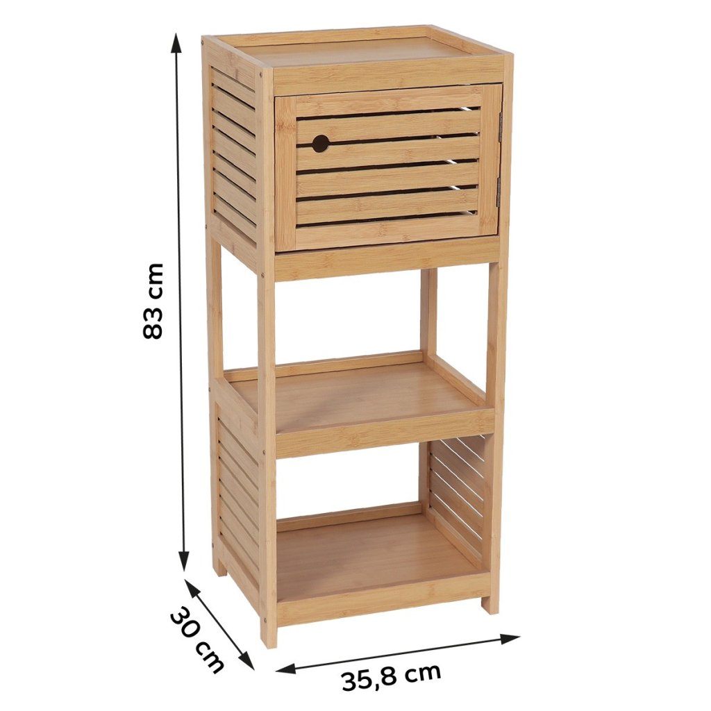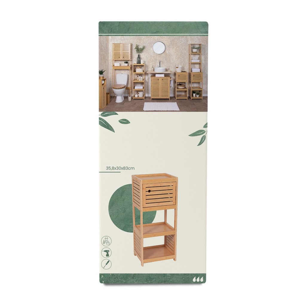 Bambusová polička do koupelny od francouzské značky Tendance. Vyrobeno z odolného a ekologického bambusu, nabízí nejen stylový vzhled, ale také odolnost proti vlhkosti, díky čemuž je ideální volbou do koupelen. Regál má uzavřenou skříňku, která umožňuje diskrétní uložení kosmetiky, koupelnových doplňků nebo čistících prostředků, zatímco tři otevřené police umožňují snadný přístup k těm nejpotřebnějším věcem, jako jsou ručníky nebo dekorace. Díky své konstrukci se tento kus nábytku skvěle hodí do moderních a minimalistických interiérů, kterým dodává teplo a přirozenost.Kolekce Trinidad je funkční nábytek vyrobený z odolného bambusu dodá vašemu interiéru teplo a styl. Jednoduchá a estetická organizace ručníků, kosmetiky a doplňků. Použité bambusové dřevo je odolné vůči vlhkosti a deformacím a také se snadno čistí.