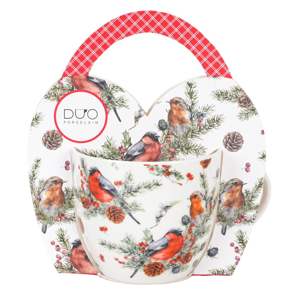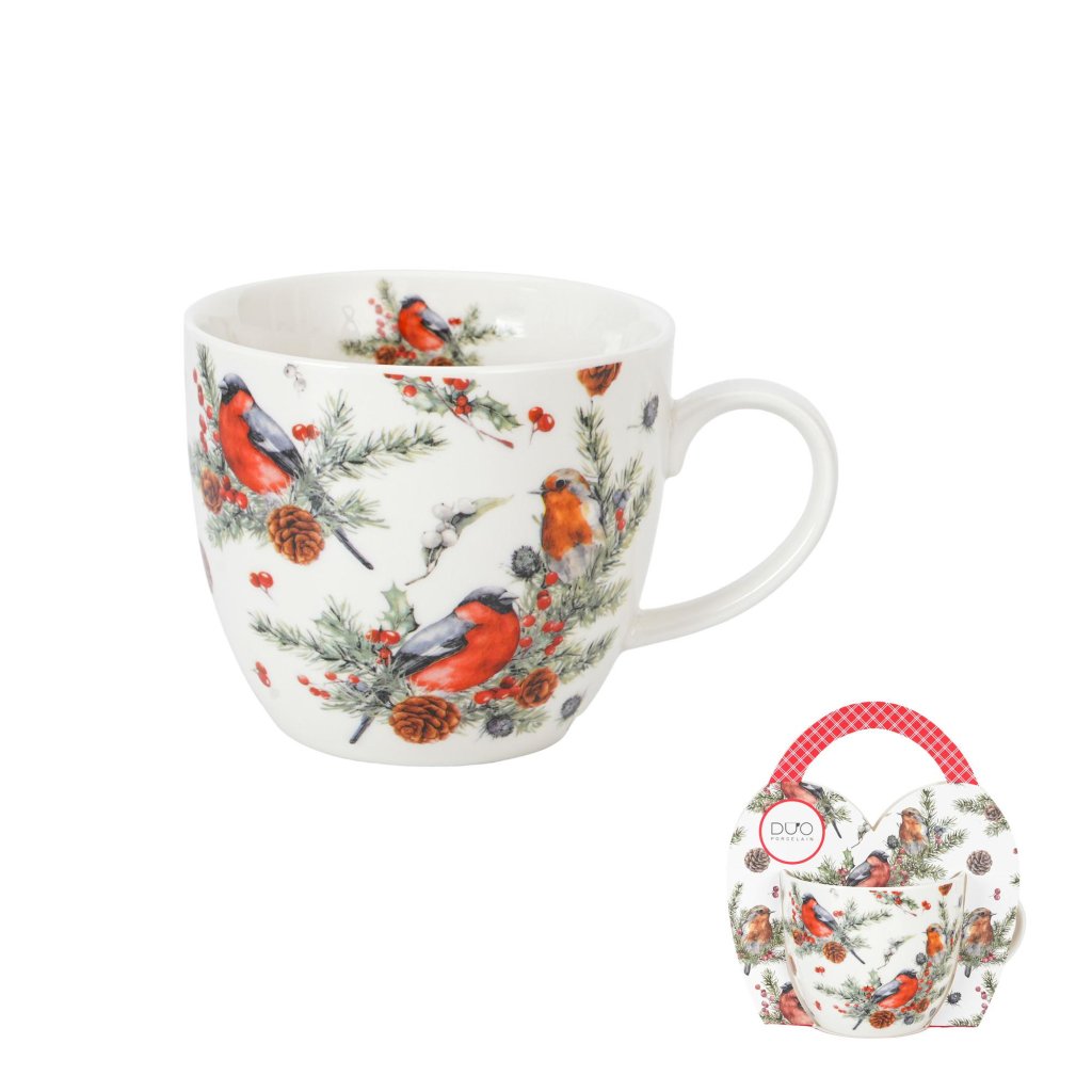 Hrnek zdobí nádherný motiv zimních ptáčků mezi větvičkami jehličí a bobulemi, který vytváří příjemný sváteční charakter a zútulní každé zimní ráno či večer. Motiv je detailní, jemný a působí mimořádně harmonicky.