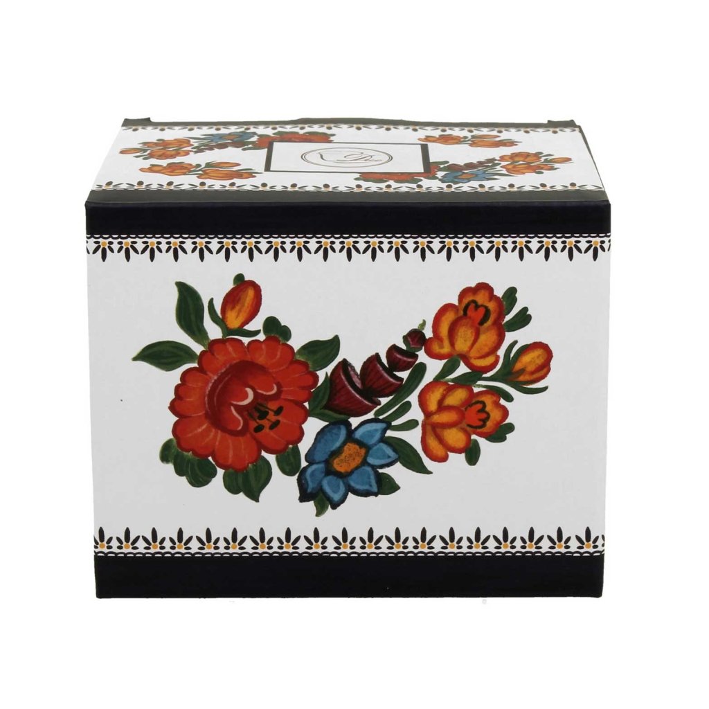 Jedinečný hrnek vyrobený z kvalitního porcelánu New Bone China, který spojuje funkčnost a uměleckou krásu. Hrnek je inspirován motivem malovaných oranžových květů. Intenzivní a výrazné barvy v kombinaci s charakteristickým folklórním designem dávají kolekci rozhodně vyniknout. Vyznačuje se lehkostí a zároveň vysokou odolností. Elegantním balením v dárkové krabičce je hrnek připraven k darování při různých příležitostech.Doplňkové parametry
