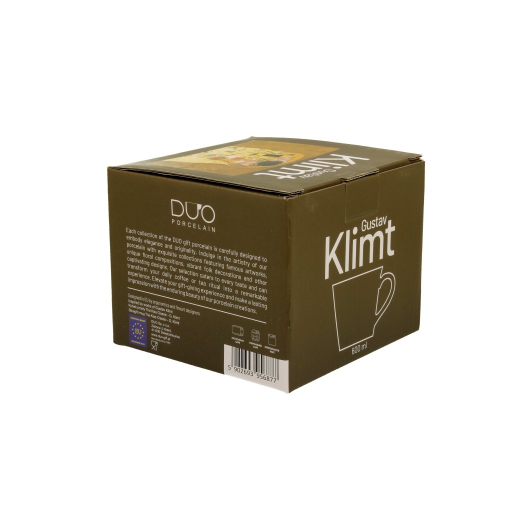 Porcelánový hrnek Klimt The Kiss o objemu 600 ml je výjimečným kouskem pro milovníky umění a elegantních doplňků do domácnosti. Vyroben je z kvalitního porcelánu , který spojuje odolnost, krásný vzhled a jemný lesk, díky čemuž působí mimořádně stylově.