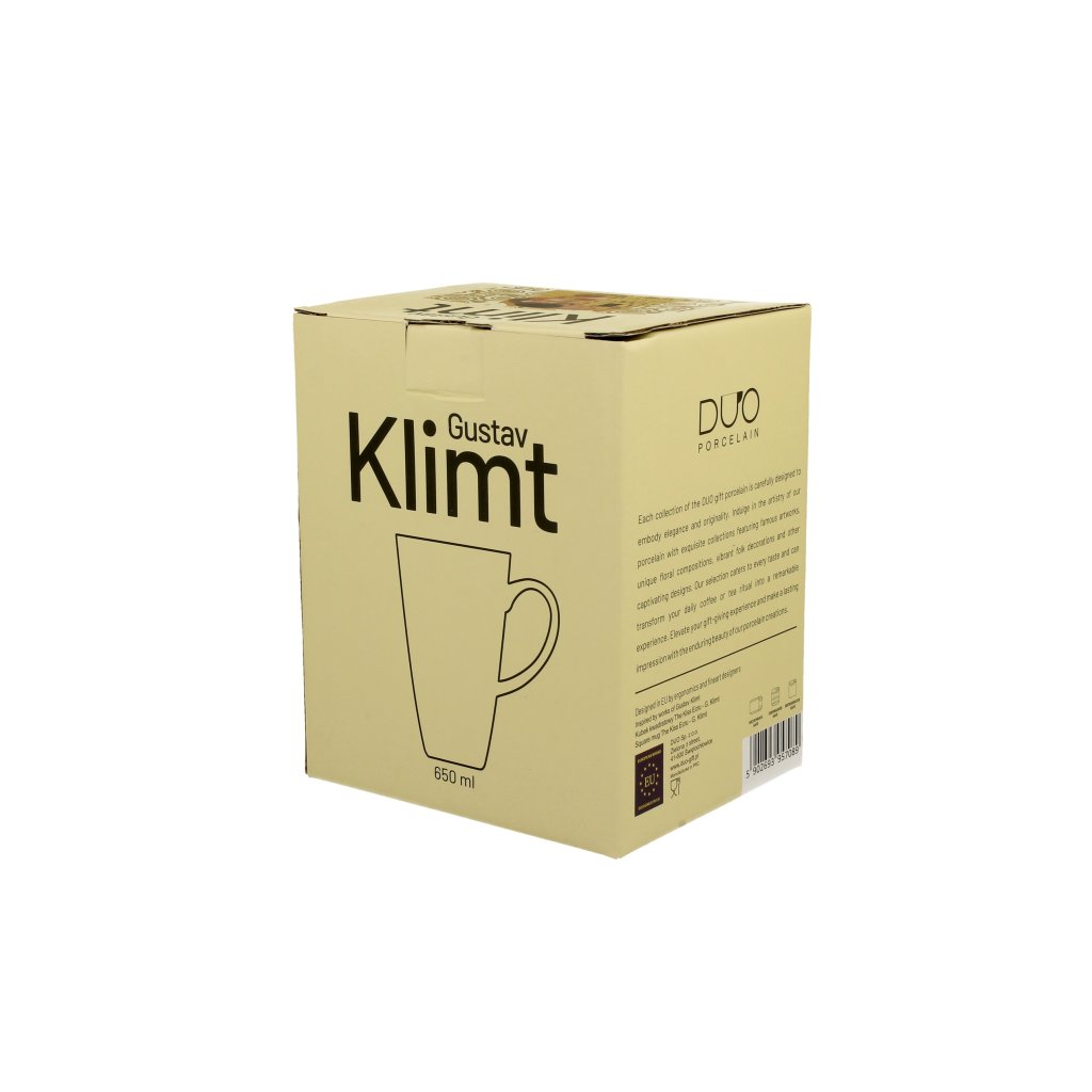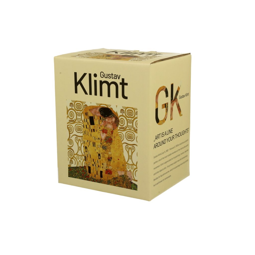 Hrnek zdobí slavný motiv „The Kiss“ od Gustava Klimta , tentokrát v jemném provedení s odstíny ecru a bílé. Vytváří tak působivý, luxusní vzhled, který se krásně hodí do klasických i moderních interiérů.