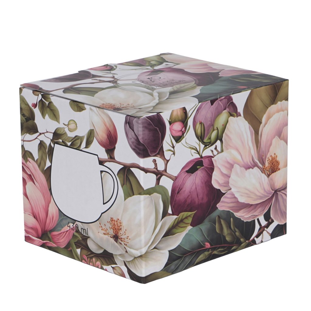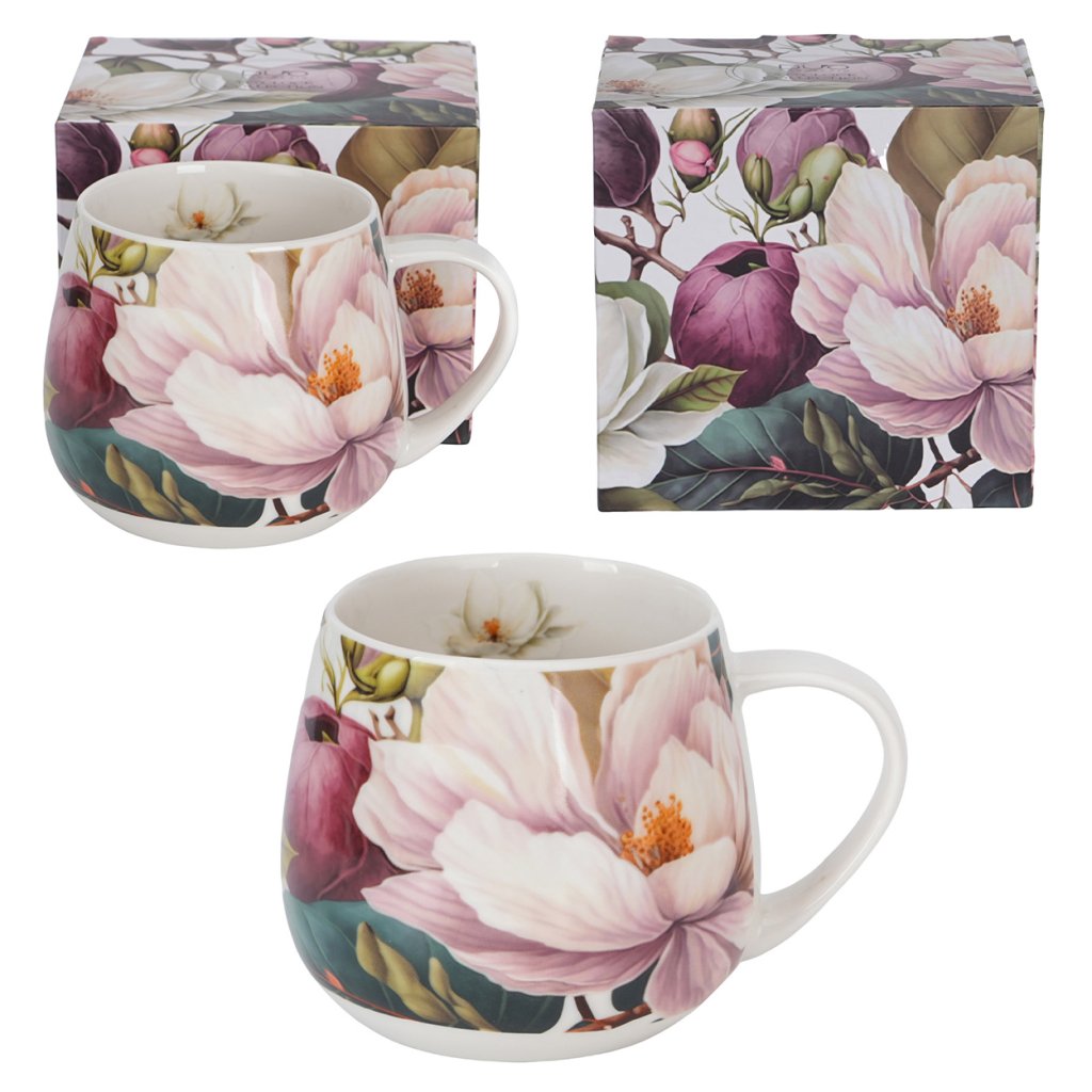 Porcelánový hrnek Magnolie o objemu 430 ml je ideálním doplňkem pro ty, kteří mají v oblibě klasické tvary a romantické květinové motivy . Povrch hrníčku zdobí bohaté květy magnólie , které dodávají každému doušku kávy či čaje elegantní a harmonický nádech.