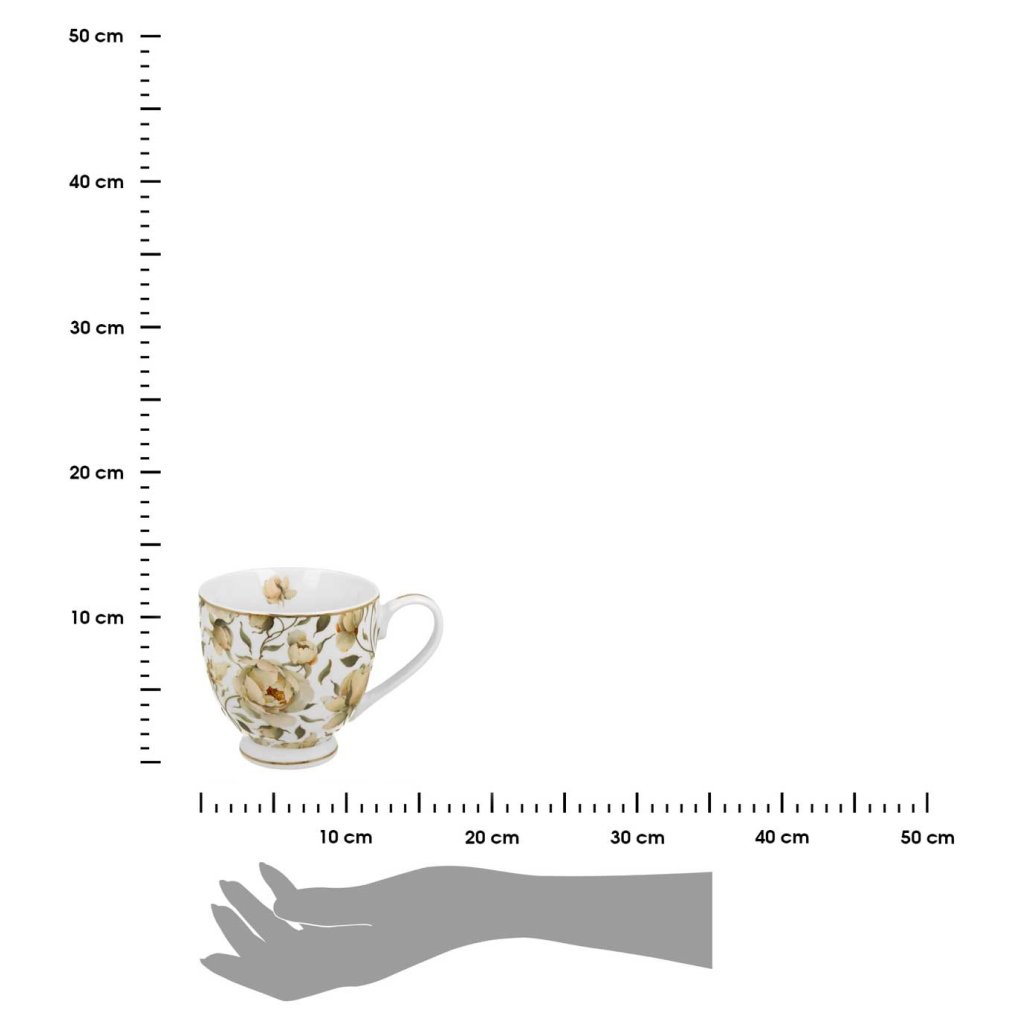 Hrnek "English Roses White" je dokonalou kombinací funkčnosti a elegance. Hrnek se vyznačuje klasickým tvarem na nožičce se zlatým okrajem a je vyroben z kvalitního porcelánu New Bone China. Vyznačuje se lehkostí a zároveň vysokou odolností.Elegantním balením v dárkové krabičce je hrnek připraven k darování při různých příležitostech.