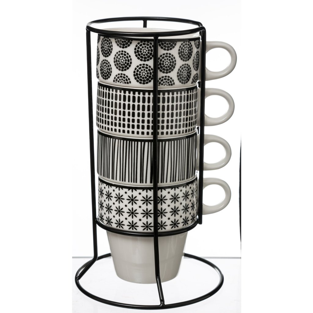 Sada 4 hrníčků vyrobených z kvalitní keramiky. Povrch každé sklenice zdobí krásný černý vzor. Hrnek poslouží při různých příležitostech k podávání kávy nebo čaje. Hrníčky jsou vhodné do myčky na nádobí. Lze je použít i v mikrovlnné troubě.Doplňkové parametry