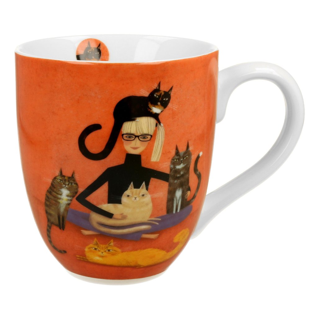 Hrnek zdobí originální umělecký motiv ženy obklopené kočkami , díky kterému působí hravě, netradičně a mimořádně osobitě. Ilustrace má výrazný charakter a činí z hrníčku nejen praktický doplněk, ale také dekorativní prvek na stole či v kuchyni.