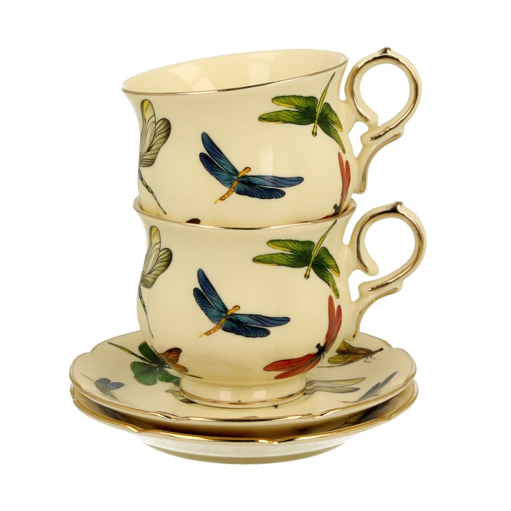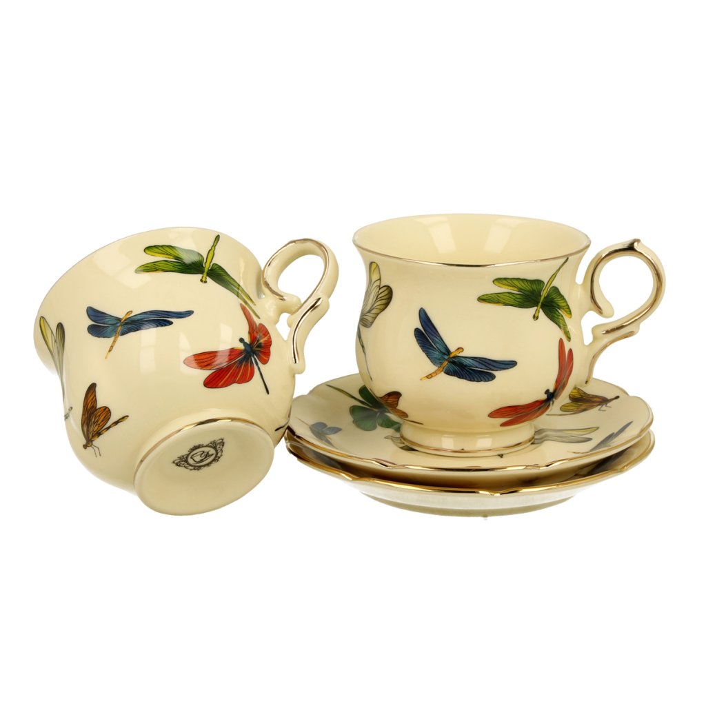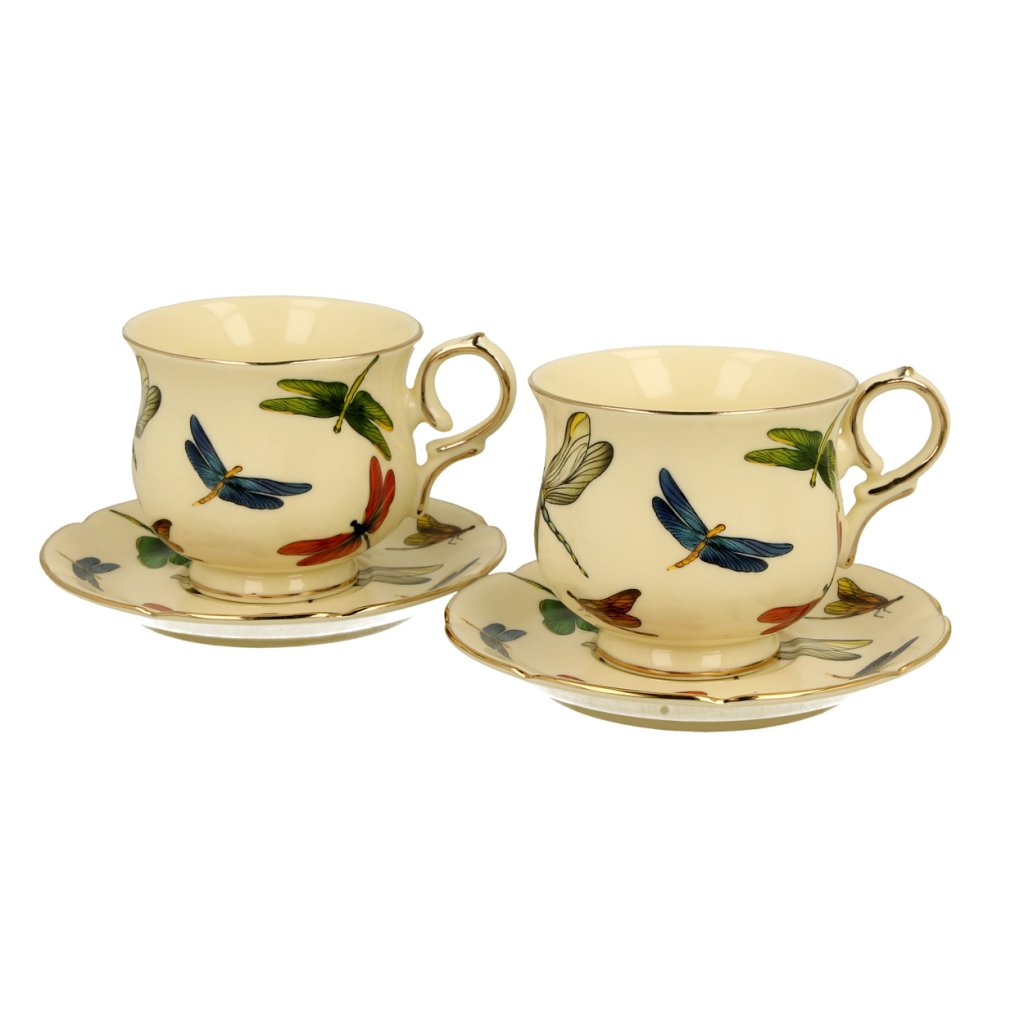 Porcelánový šálek na noze s podšálkem Dragonfly 150 ml sada 2ks