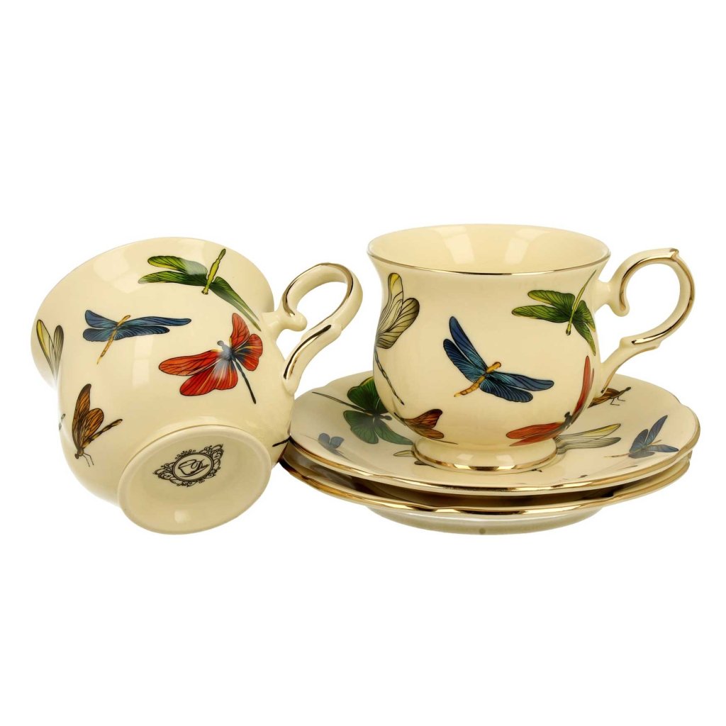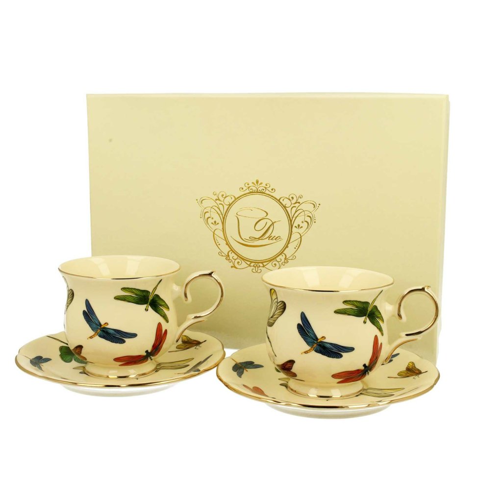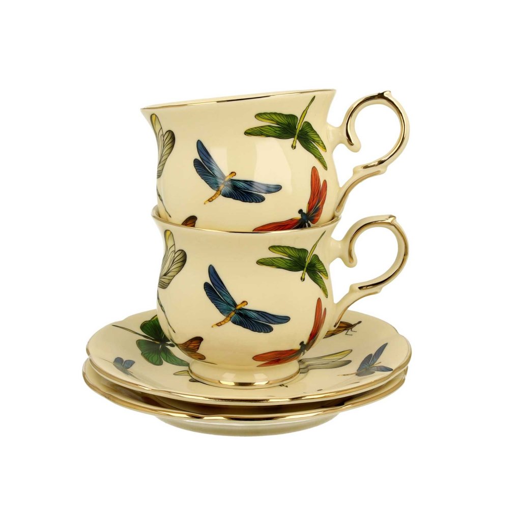 Porcelánový šálek na noze s podšálkem Dragonfly 260 ml sada 2ks