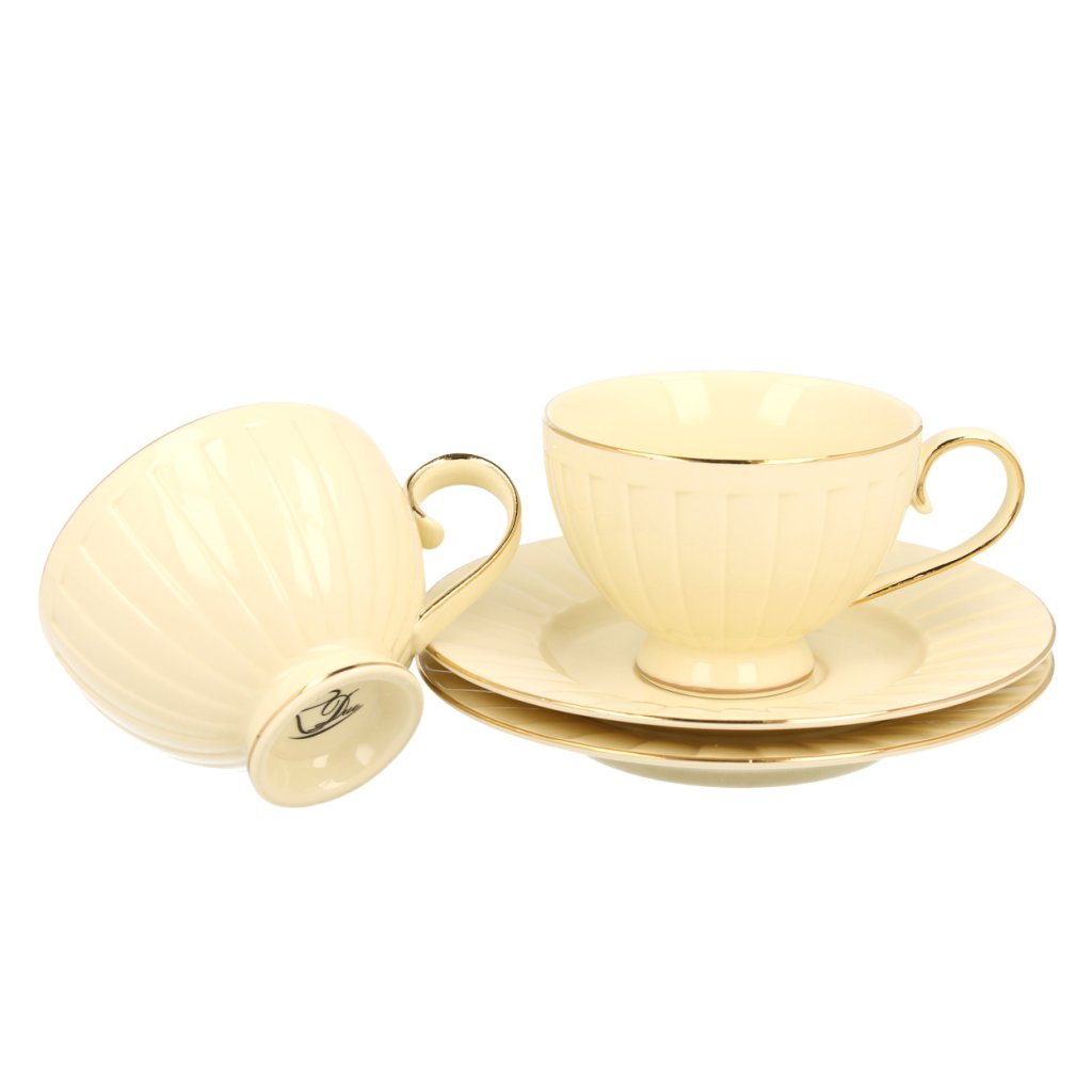 Porcelánový šálek na noze s podšálkem Ecru Nina 220 ml sada 2ks