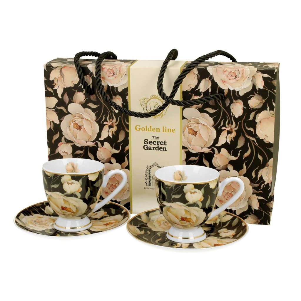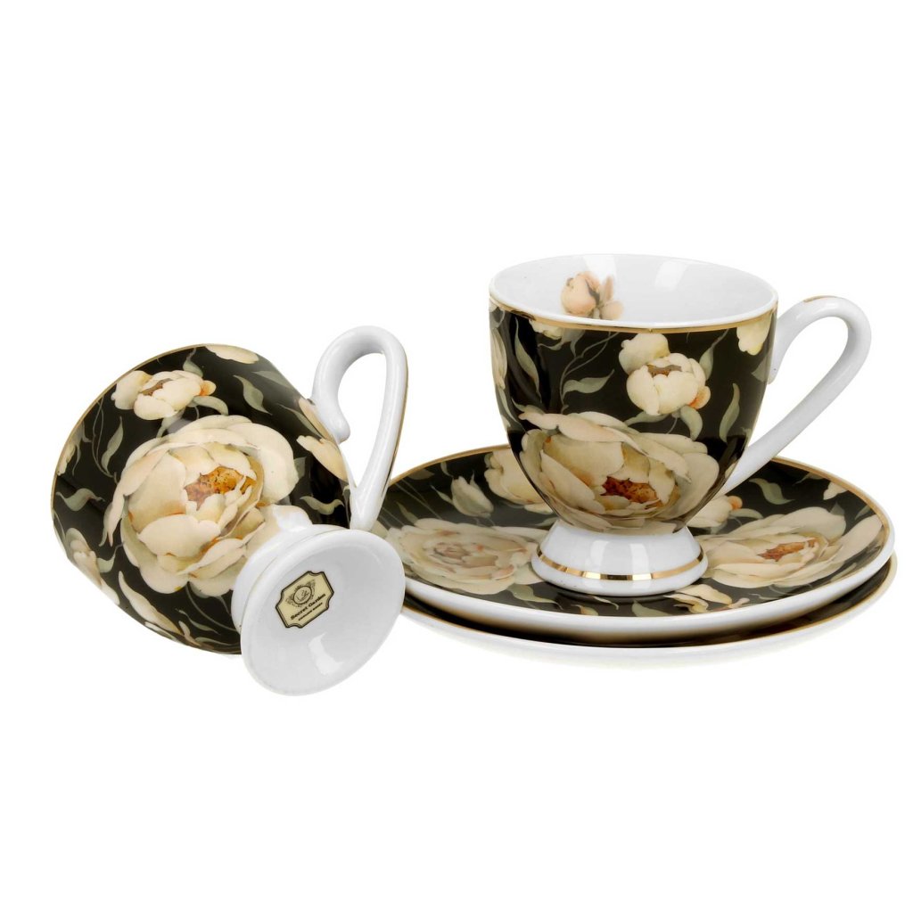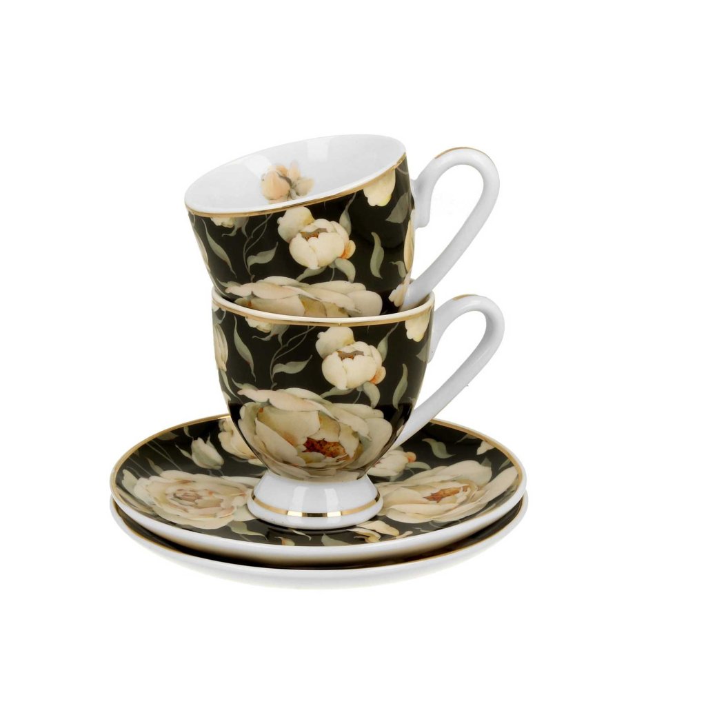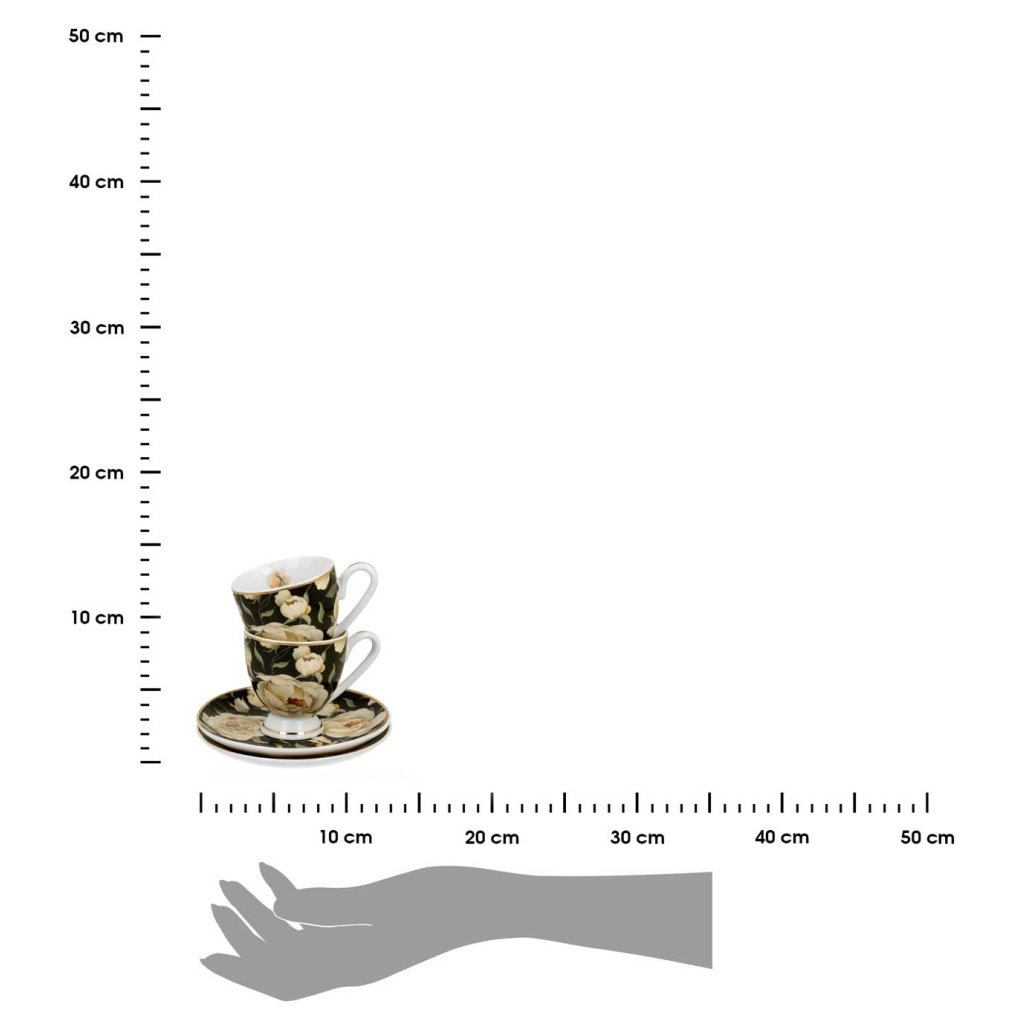 Porcelánový šálek na noze s podšálkem English Roses Black 90 ml sada 2ks