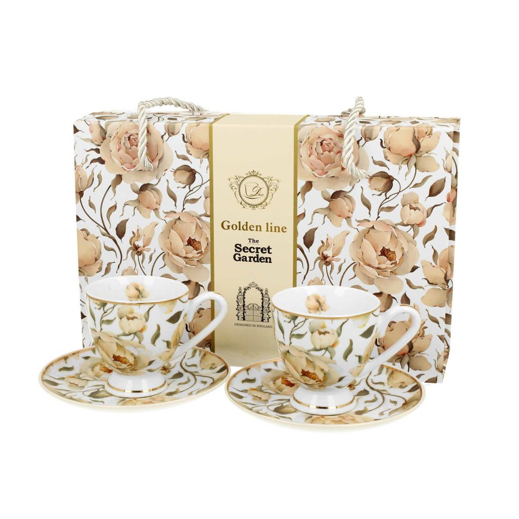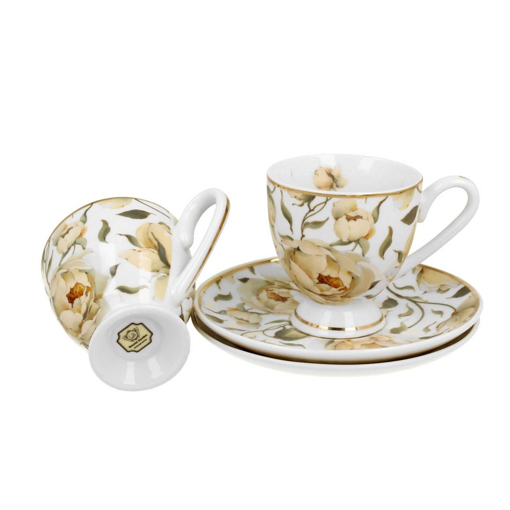 Porcelánový šálek na noze s podšálkem English Roses White 90 ml sada 2ks