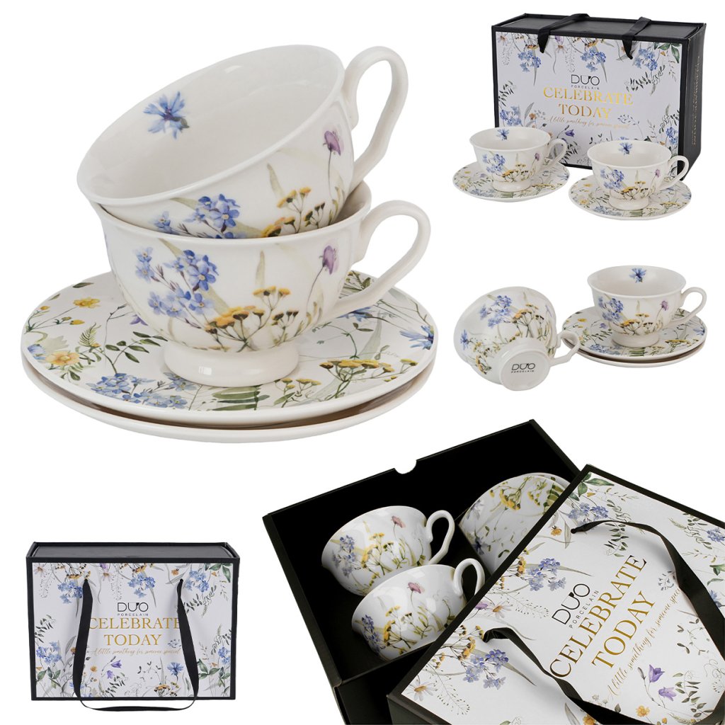 Tradiční tvar typu Royal v kombinaci s praktickými podšálky zaručuje pohodlné a estetické servírování. Celá souprava je zabalena v dekorativním dárkovém balení , díky čemuž je ideálním dárkem pro milovníky porcelánu a domácí pohody .