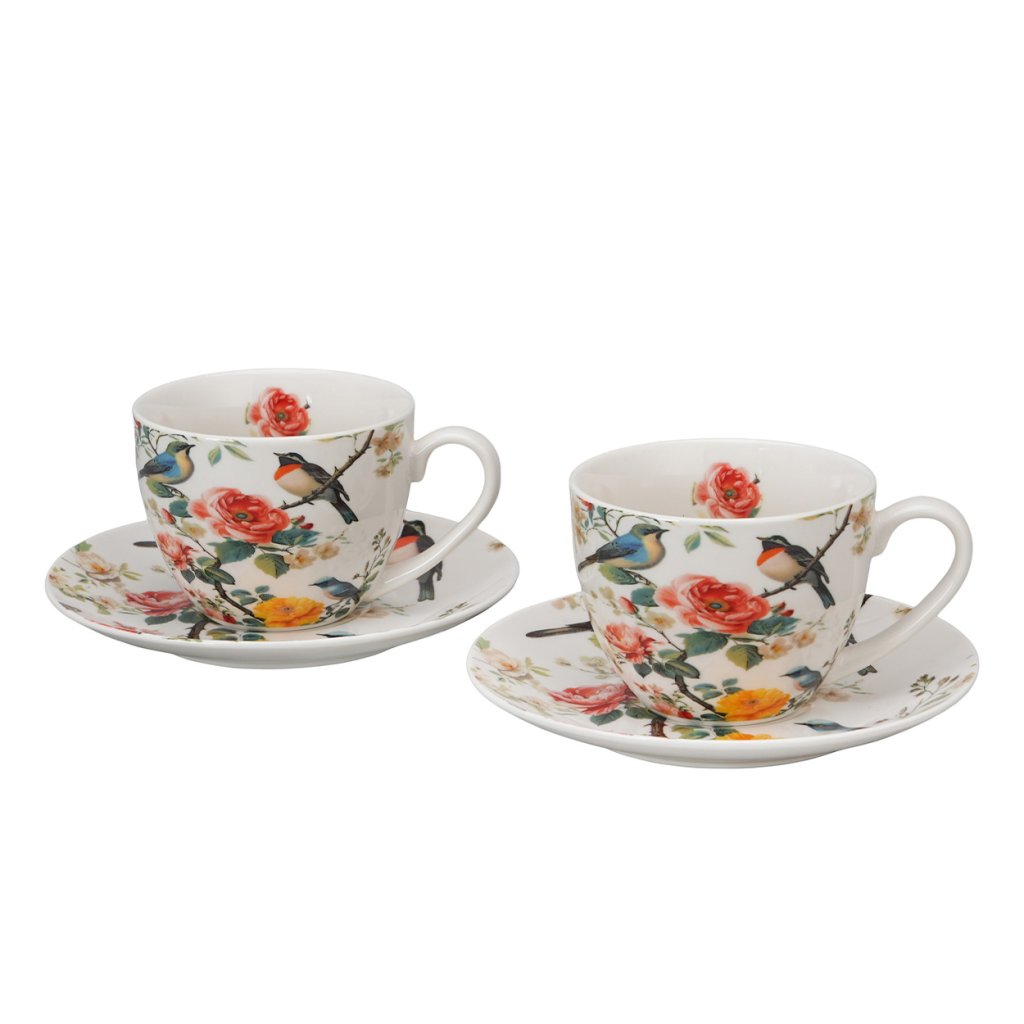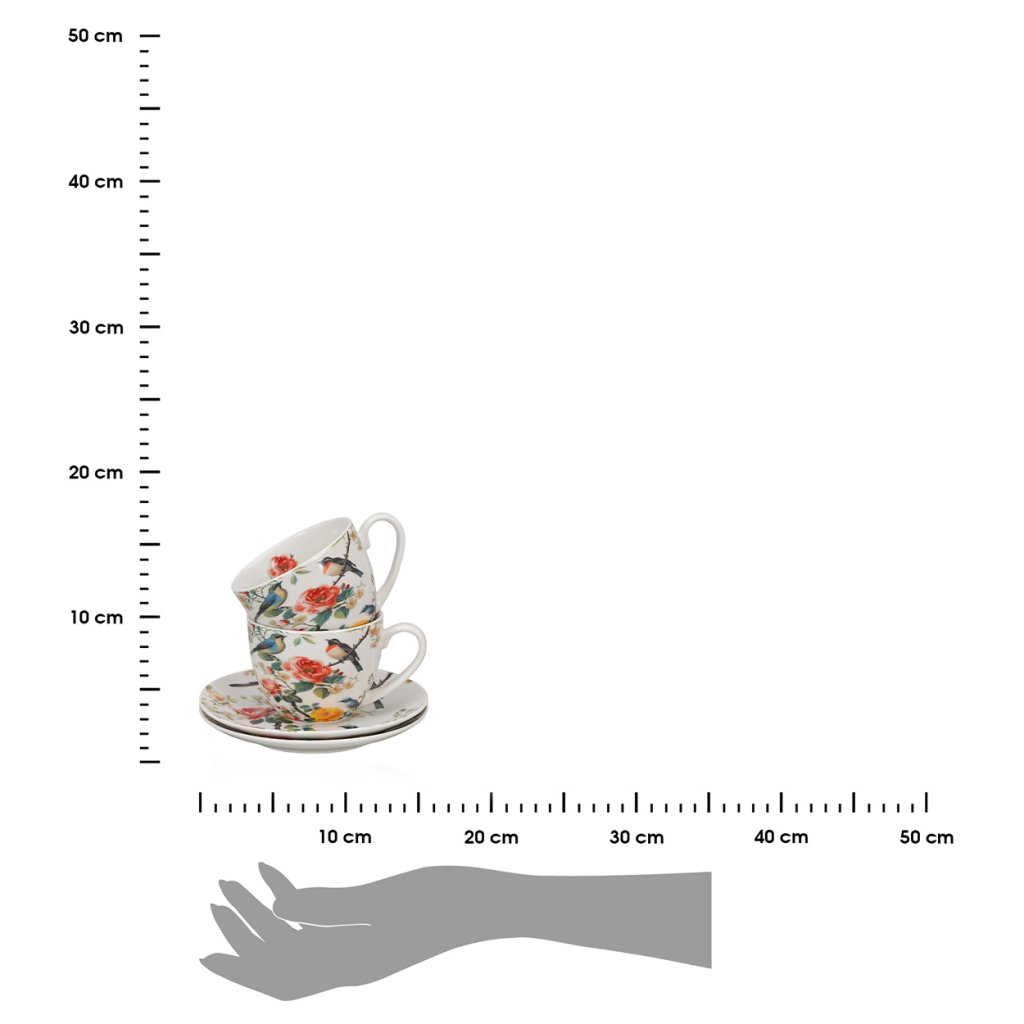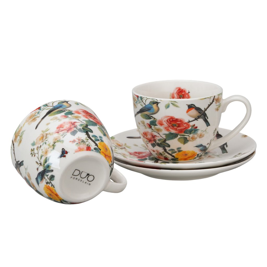 Porcelánový šálek s podšálkem April o objemu 270 ml v sadě 2 kusů je skvělou volbou pro ty, kteří mají v oblibě něžné motivy a jemnou krásu přírody. Pestré květiny, lístky a ptáčci vytvářejí na porcelánu okouzlující atmosféru, která vynikne v každé kuchyni či obýváku.