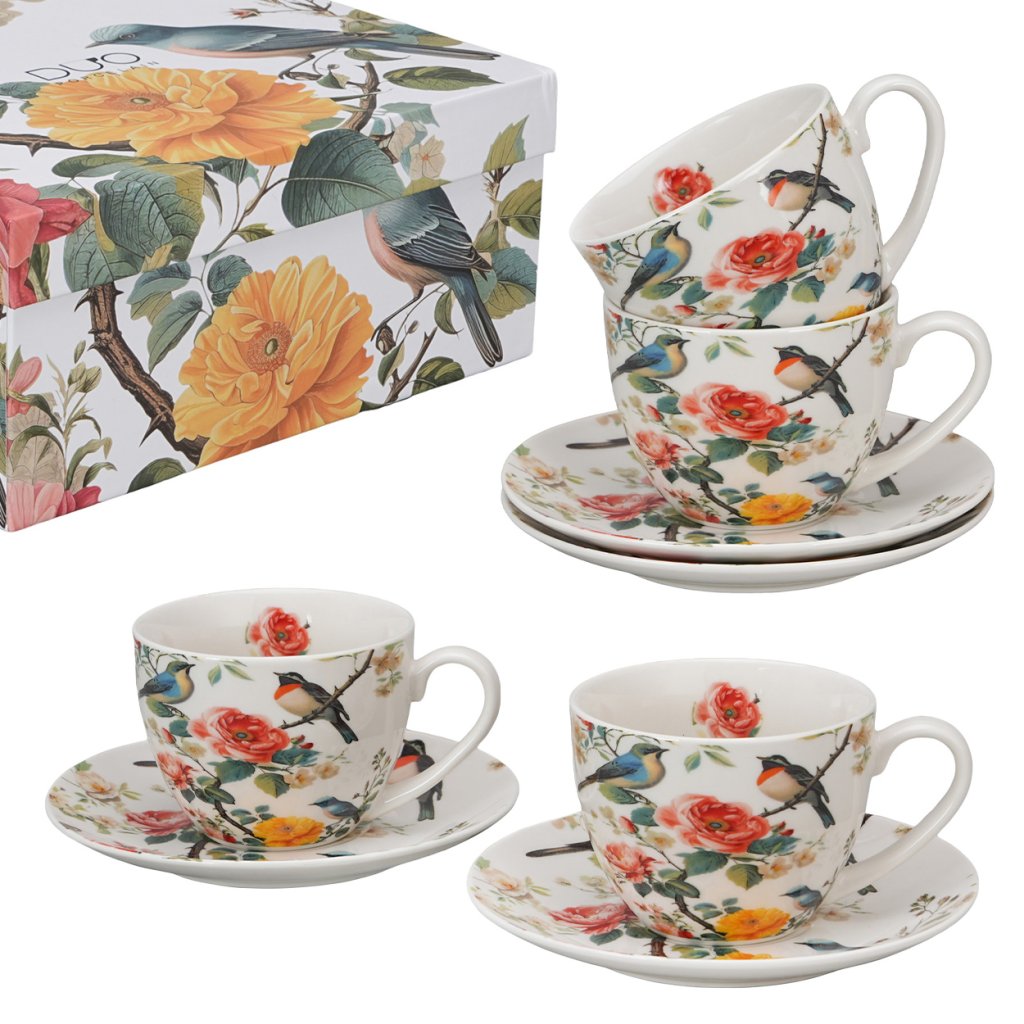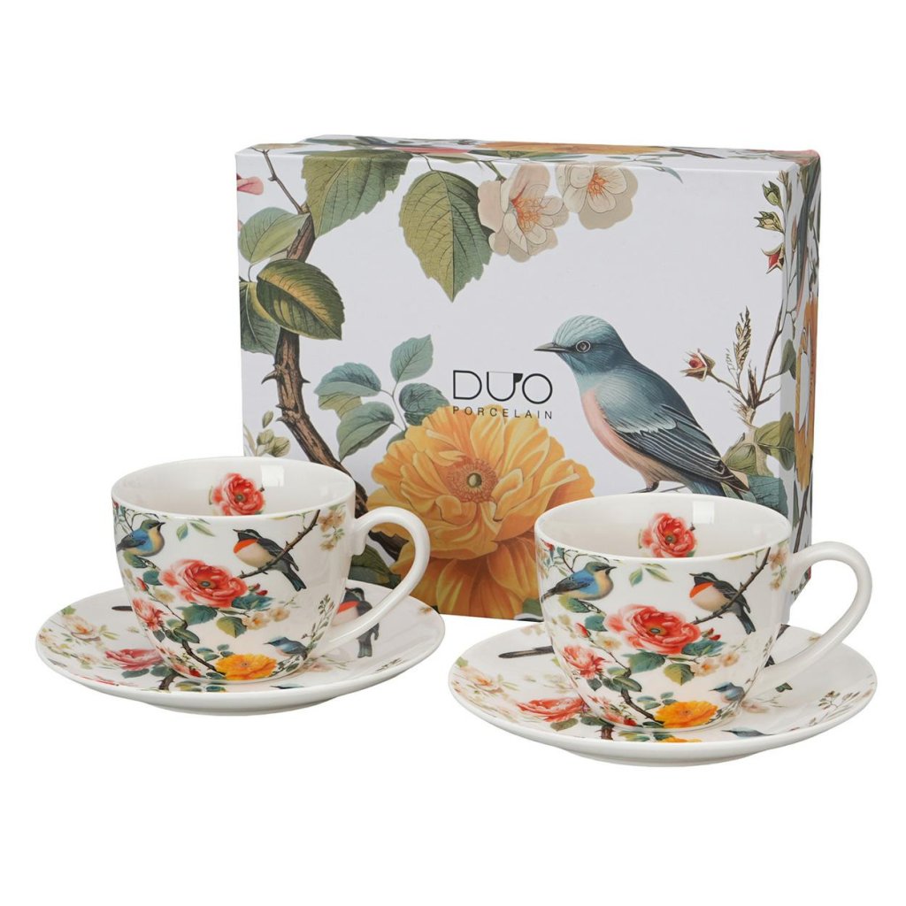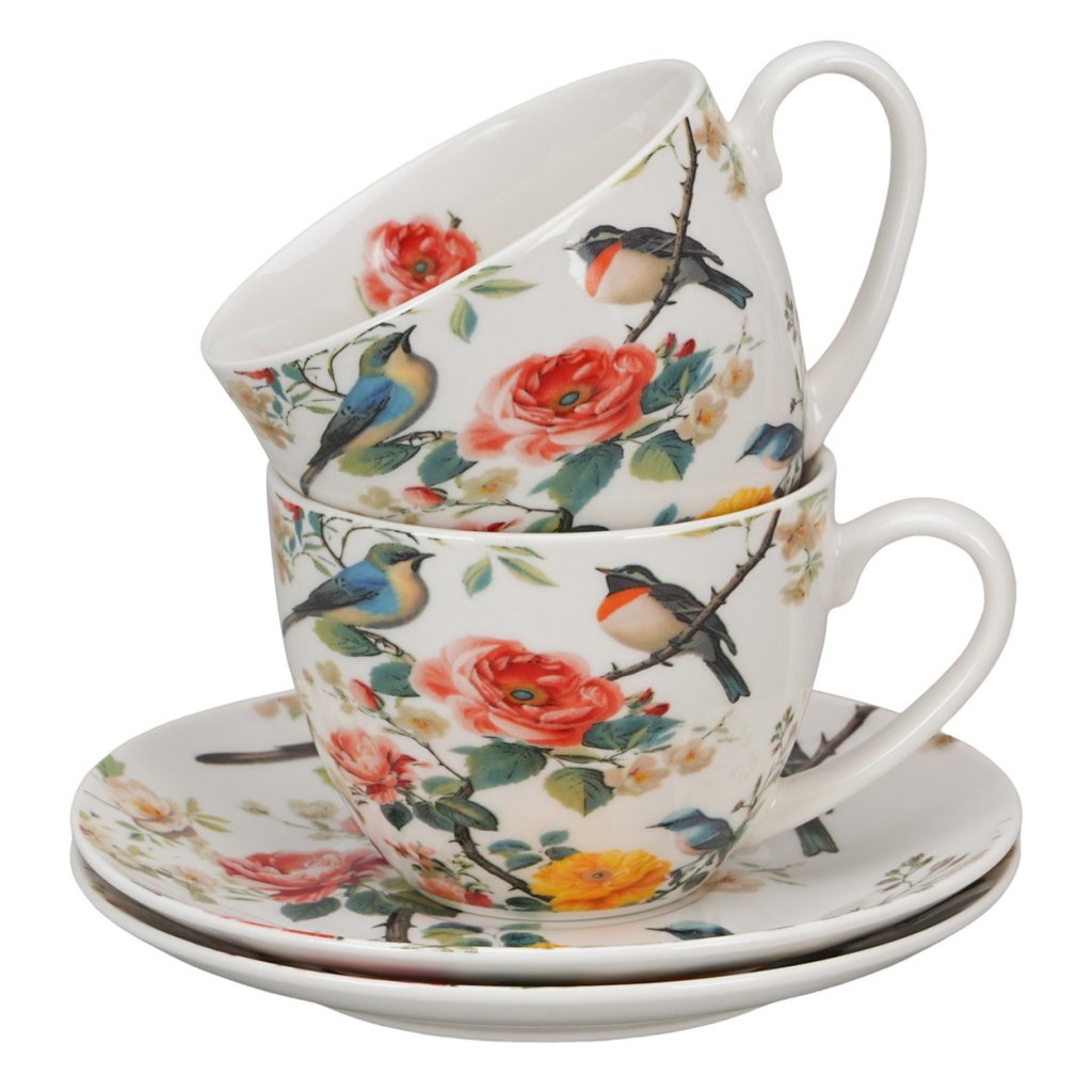 Porcelánový šálek s podšálkem April o objemu 270 ml v sadě 2 kusů je skvělou volbou pro ty, kteří mají v oblibě něžné motivy a jemnou krásu přírody. Pestré květiny, lístky a ptáčci vytvářejí na porcelánu okouzlující atmosféru, která vynikne v každé kuchyni či obýváku.