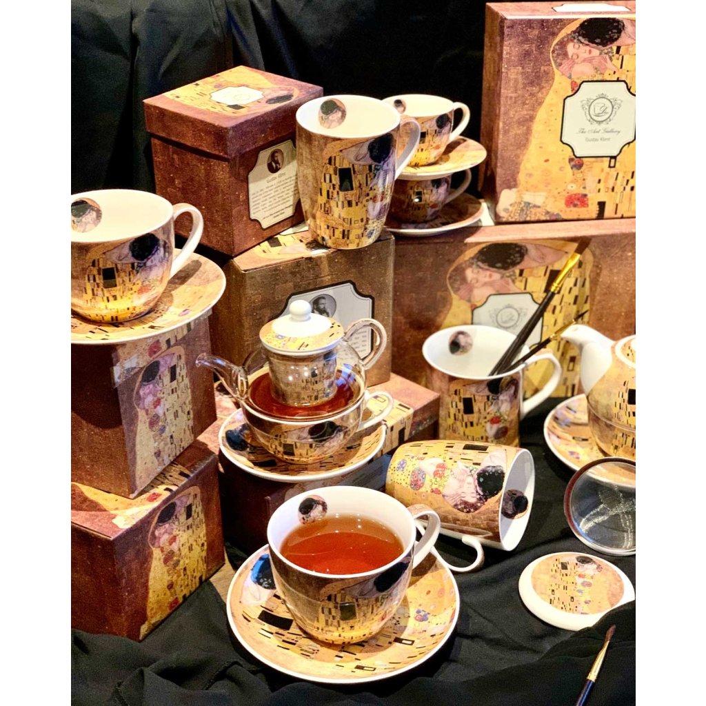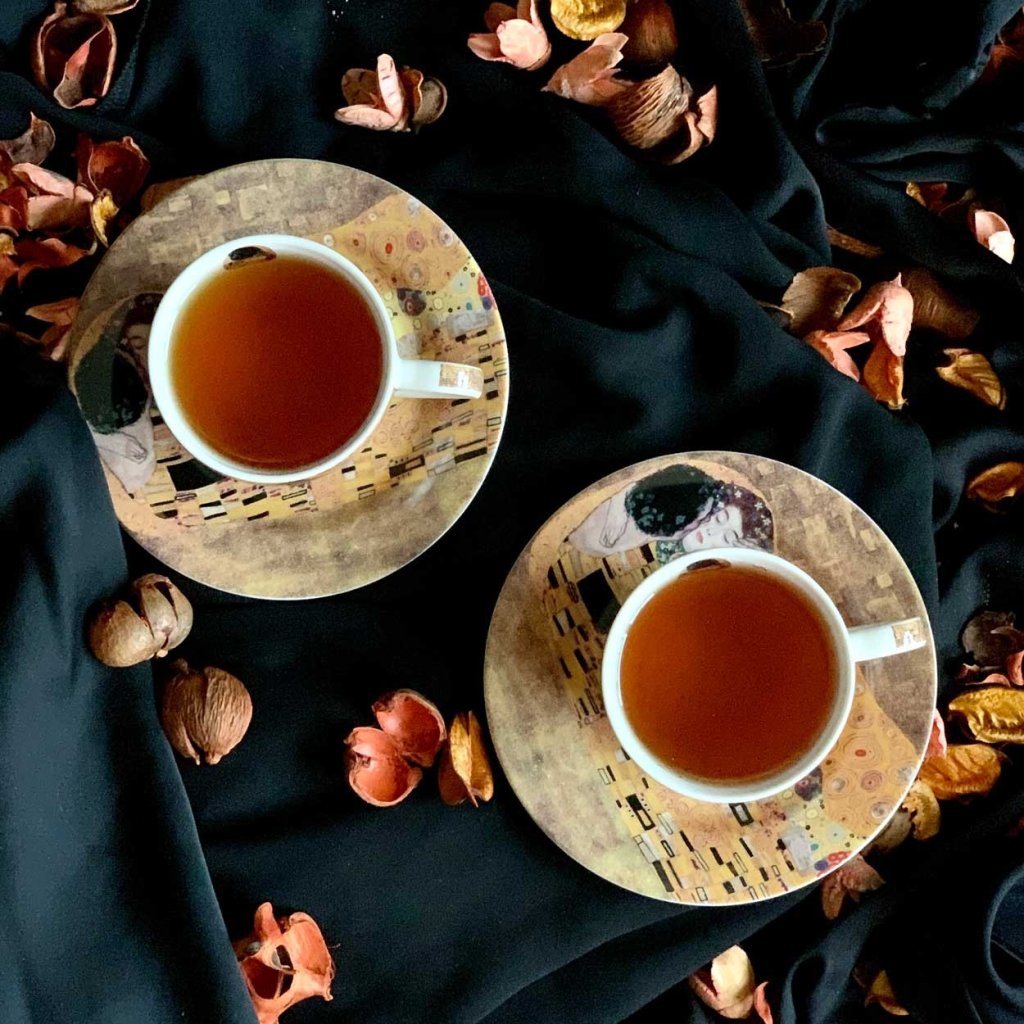 Porcelánový šálek s podšálkem Klimt The Kiss 90 ml sada 2ks