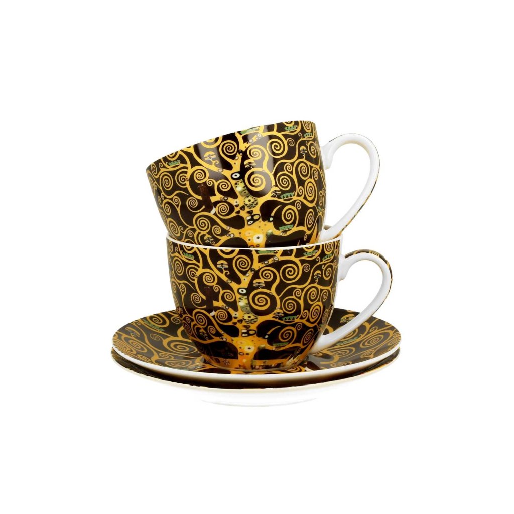Porcelánový šálek s podšálkem Klimt Tree Of Life 250 ml sada 2ks