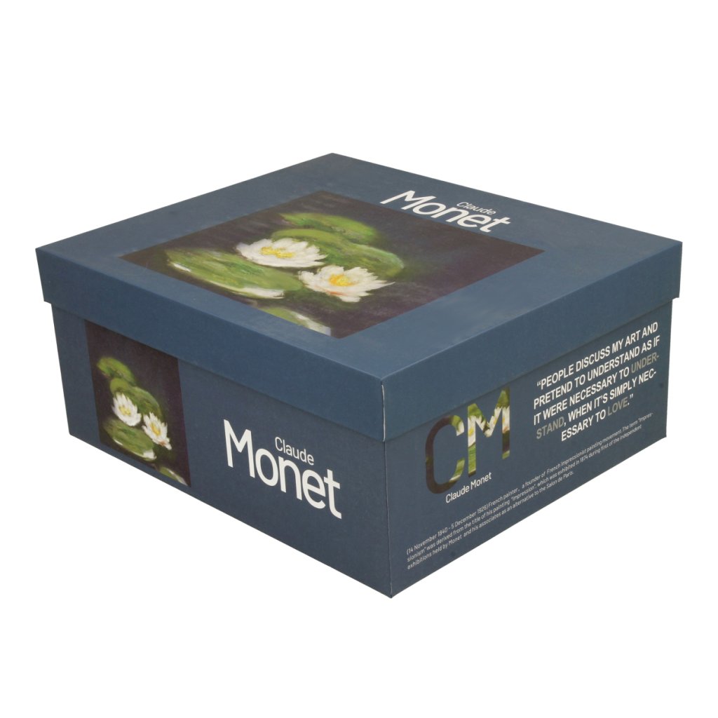 Sada dvou porcelánových šálků s podšálky Monet Nenufars o objemu 270 ml je výjimečným doplňkem pro všechny, kdo si cení krásy výtvarného umění a jemného designu. Motiv na šálcích je inspirován slavným obrazem „Lekníny“ od Claudea Moneta a přináší do každodenních chvil nádech impresionistické harmonie.
