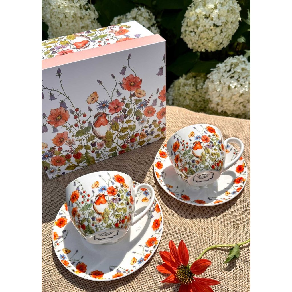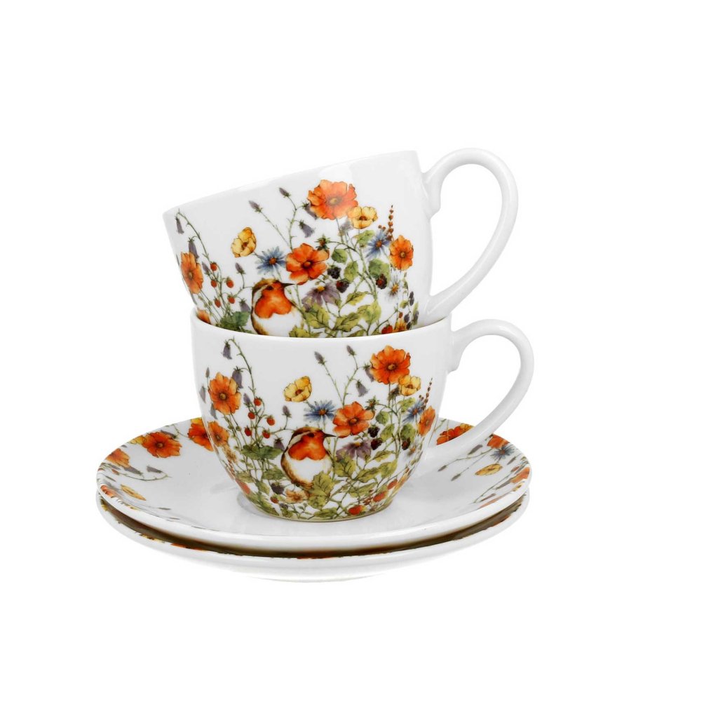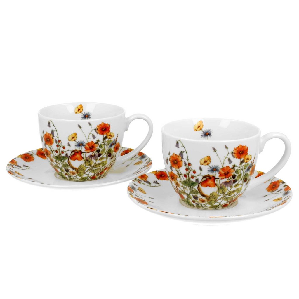 Porcelánový šálek s podšálkem Wild Birds 280 ml sada 2ks