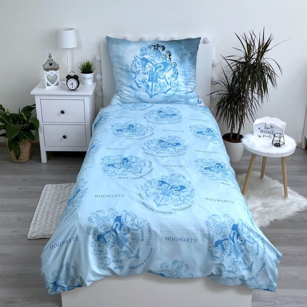 Originální dvoudílné licenční povlečení pro miminko s potiskem Harryho Pottera. Materiál: 100% polyester. Hmotnost: 110 g/m 2. Sada obsahuje: povlak na peřinu 140x200 cm + povlak na polštář 70x90 cm. Zapínání: zip. Praní: 40 °C.