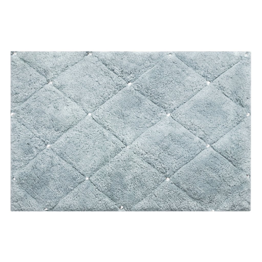 Měkký a působivý koberec zdobený krystaly, šířka: 50 cm, délka: 70 cm, barva: stříbrná, hmotnost: 1800 GSM, složení: 100% bavlna.Doplňkové parametry