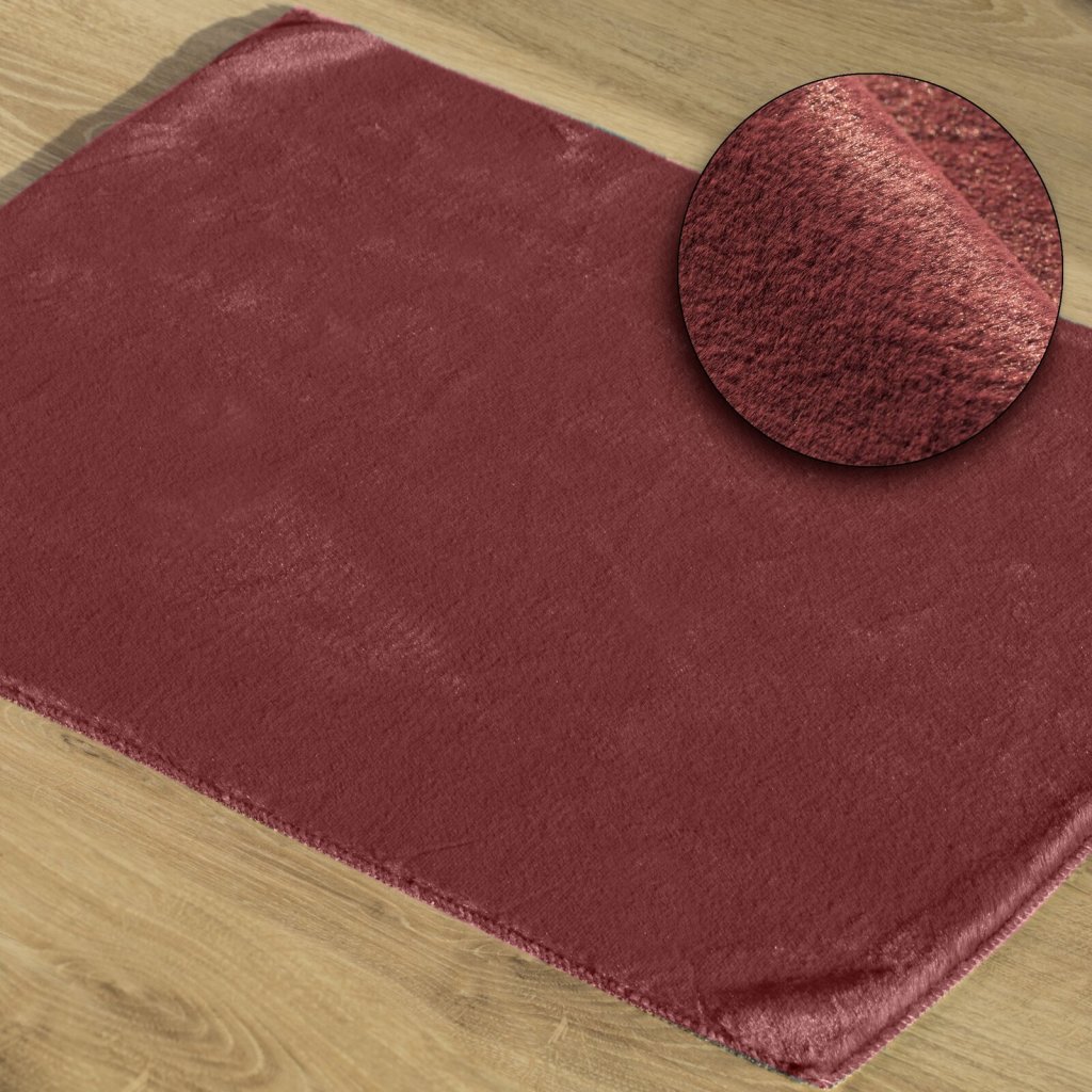 Dekorační koberec s kožešinovou strukturou šířka: 50 cm, délka: 70 cm, barva: vínová, složení: 100 % polyester.Doplňkové parametry