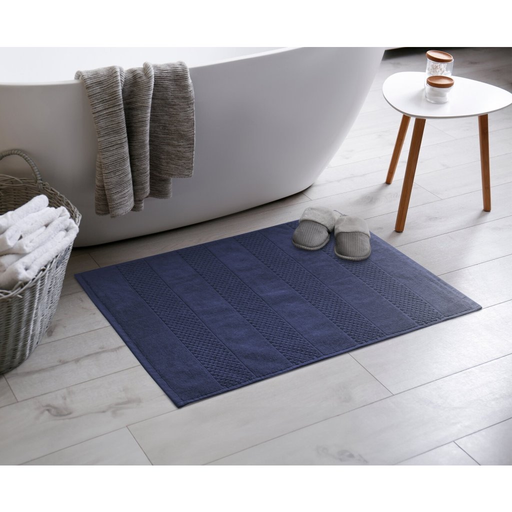 Koupelnová předložka z kolekce JESSI. Šířka: 60 cm, délka: 90 cm, barva: tmavě modrá, hmotnost: 750 GSM, složení: 98 % bavlna, 2 % viskóza.Doplňkové parametry