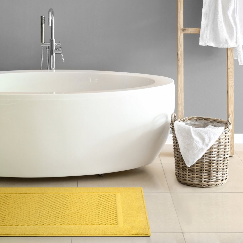Koupelnová předložka, šířka: 50 cm, délka: 70 cm, barva: hořčicová, hmotnost: 700 GSM, složení: 100% bavlna.Doplňkové parametry