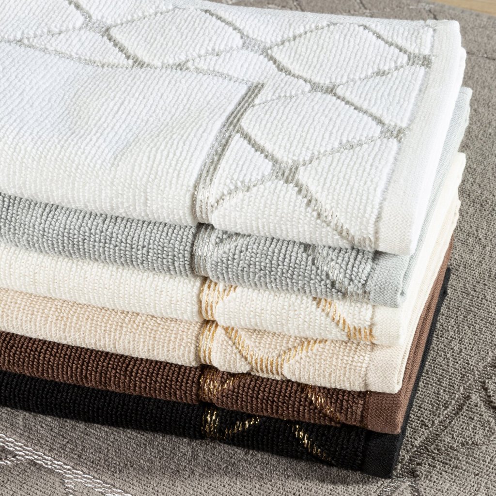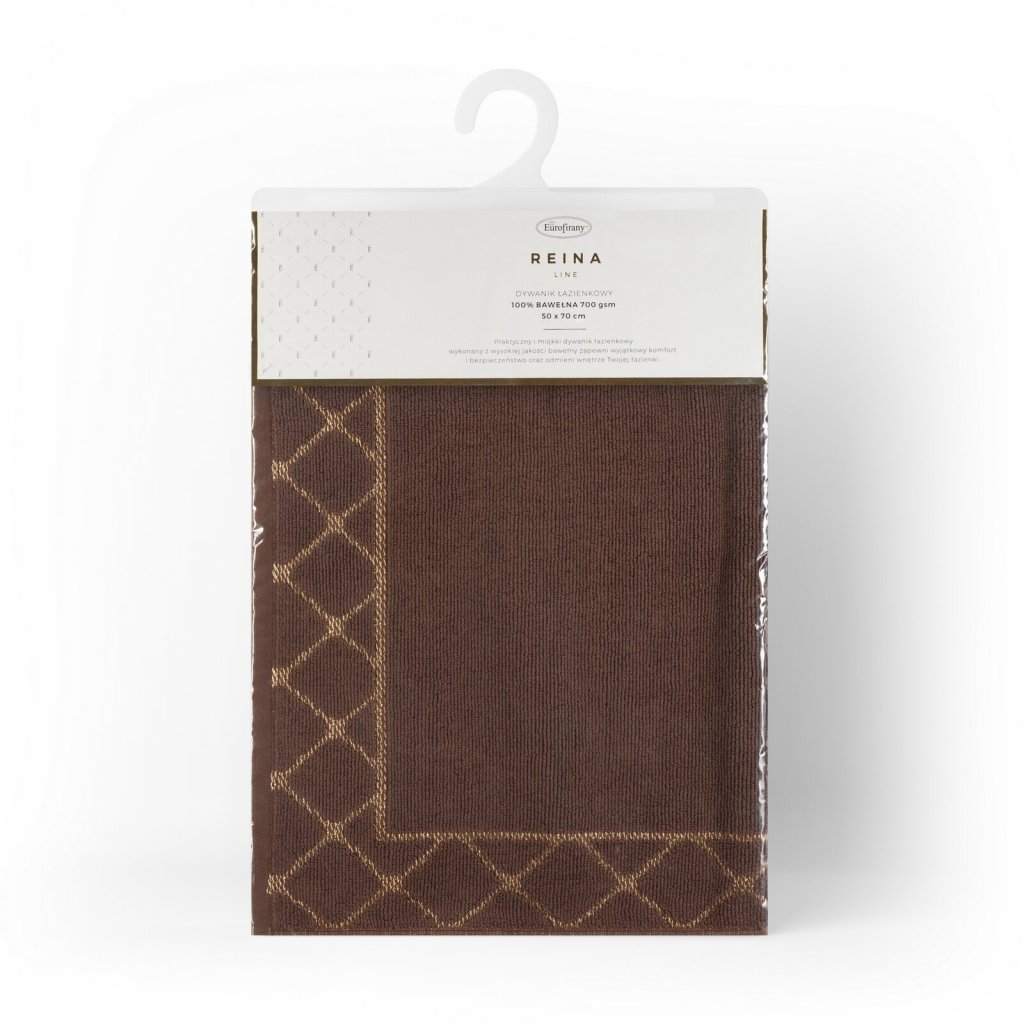 Koupelnová předložka, šířka: 50 cm, délka: 70 cm, barva: hnědá, hmotnost: 700 GSM, složení: 100% bavlna; dekorativní část: 85% bavlna, 15% polyester.Doplňkové parametry