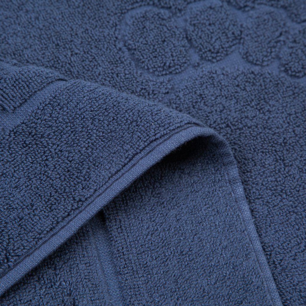 Bavlněný koberec SAMMY je praktickým doplňkem. Koberec je zdoben reliéfním vzorem nohou. Šířka: 50 cm, délka: 70 cm, barva: tmavě modrá, hmotnost: 650 GSM, složení: 100% bavlna.Doplňkové parametry