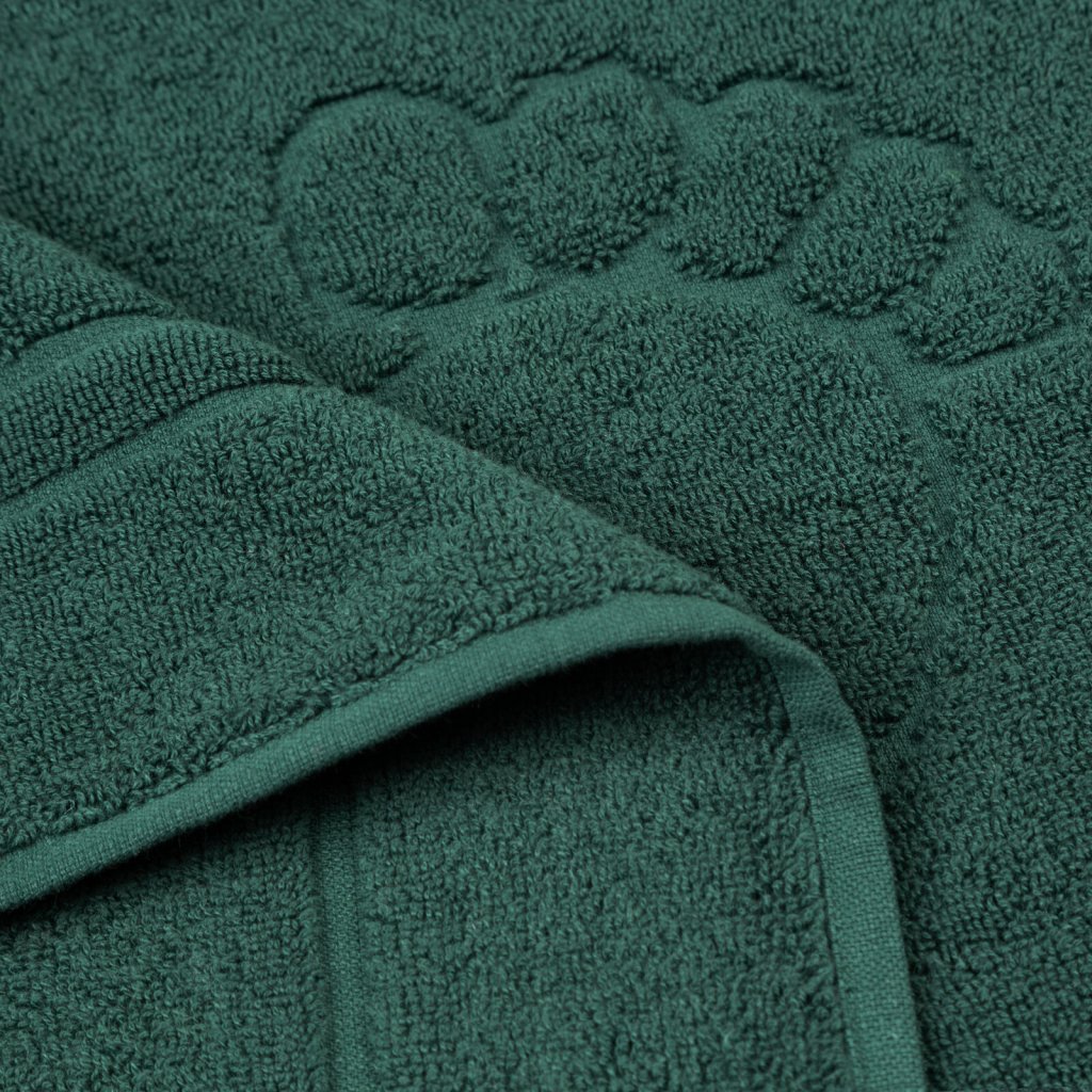 Bavlněný koberec SAMMY je praktickým doplňkem. Koberec je zdoben reliéfním vzorem nohou. Šířka: 50 cm, délka: 70 cm, barva: tmavě zelená, hmotnost: 650 GSM, složení: 100% bavlna.Doplňkové parametry