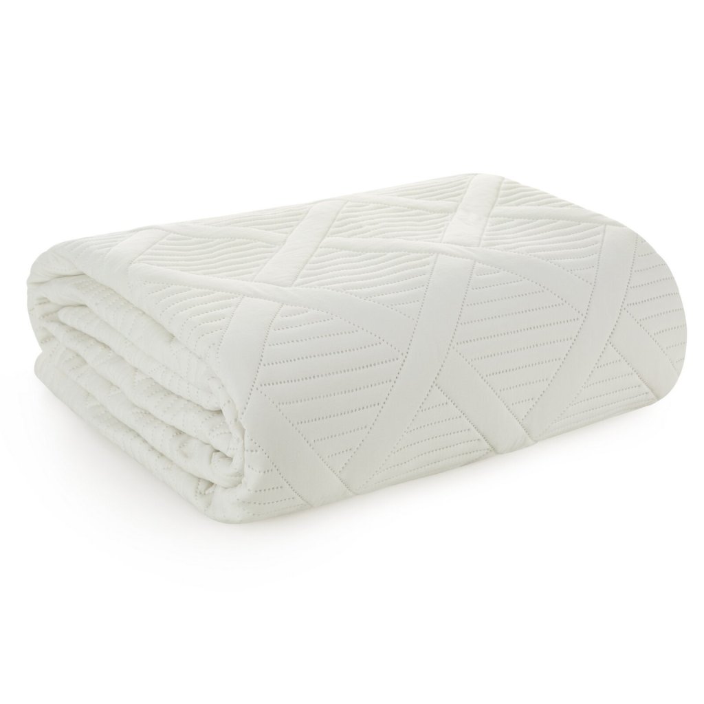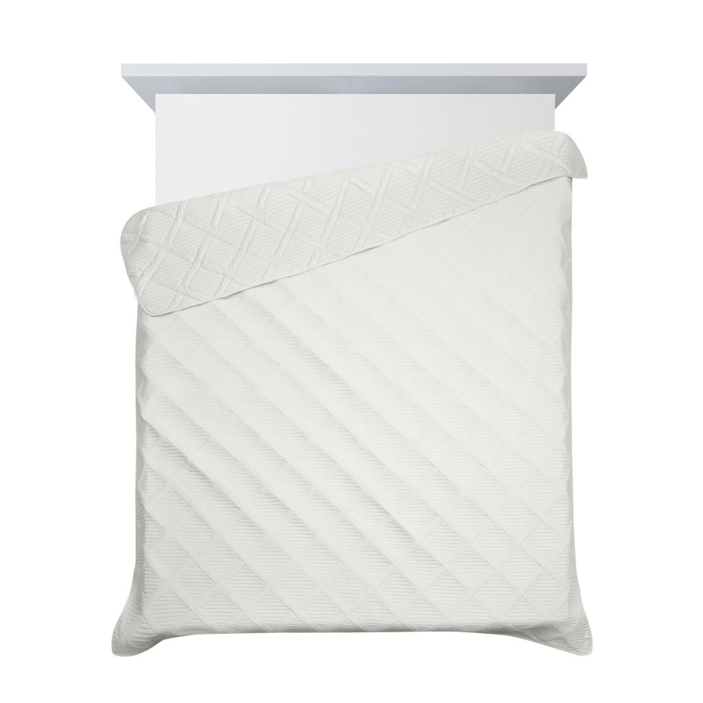 Jednobarevný přehoz na postel vyrobený technikou horkého lisování, šířka: 170 cm, délka: 210 cm, barva: krémová, hmotnost: 85+70+120 GSM, složení: 100% polyester.Doplňkové parametry